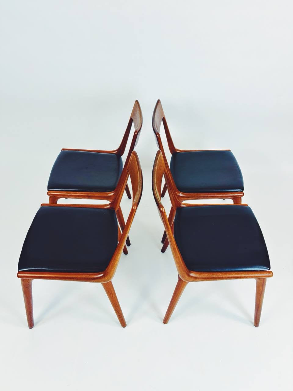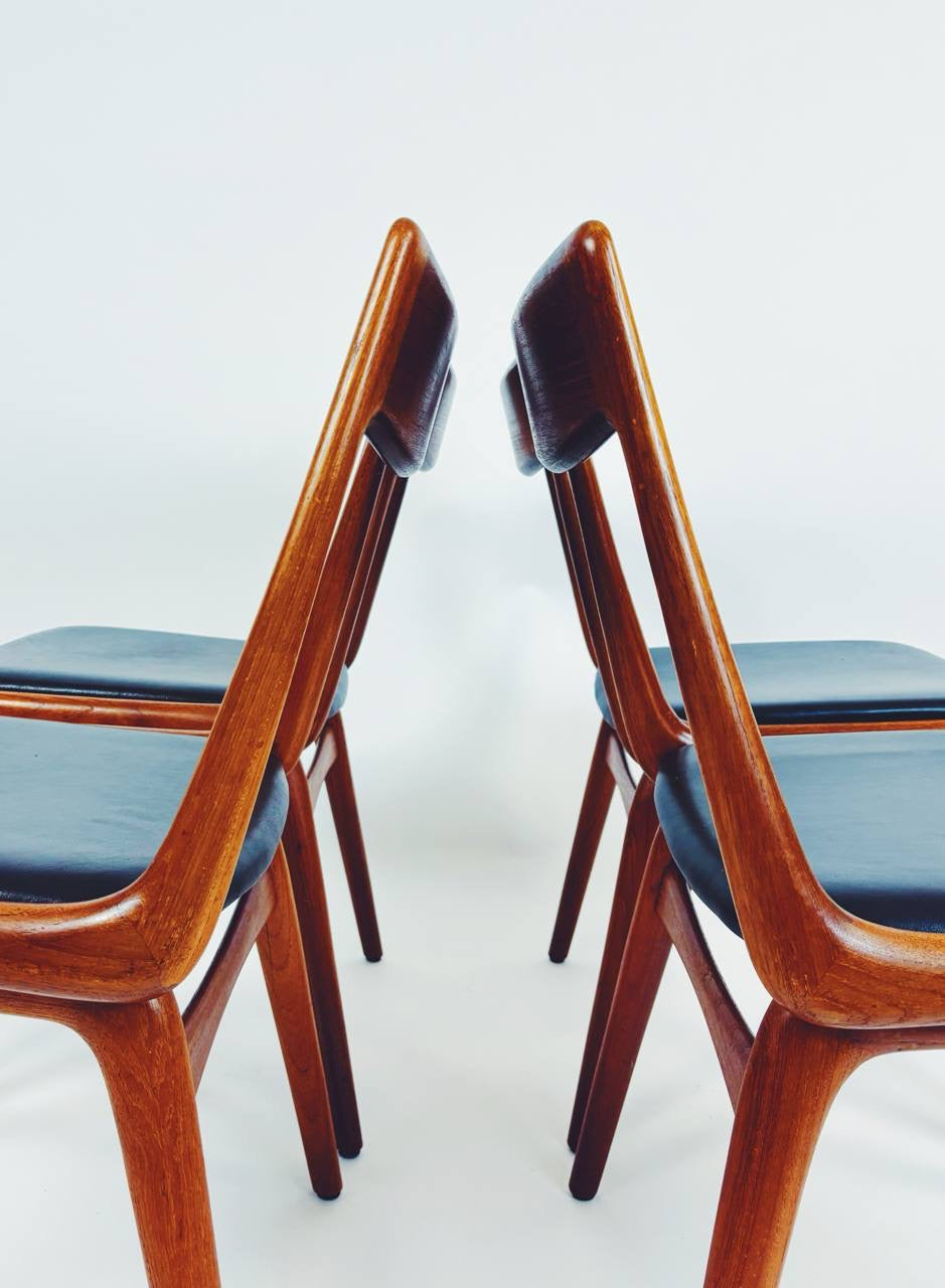 Das Gestell wurde aus massivem Teakholz gefertigt und befindet sich in sehr gutem Zustand. Die originale Polsterung sowie der schwarze Lederbezug sind ebenfalls noch sehr gut erhalten.