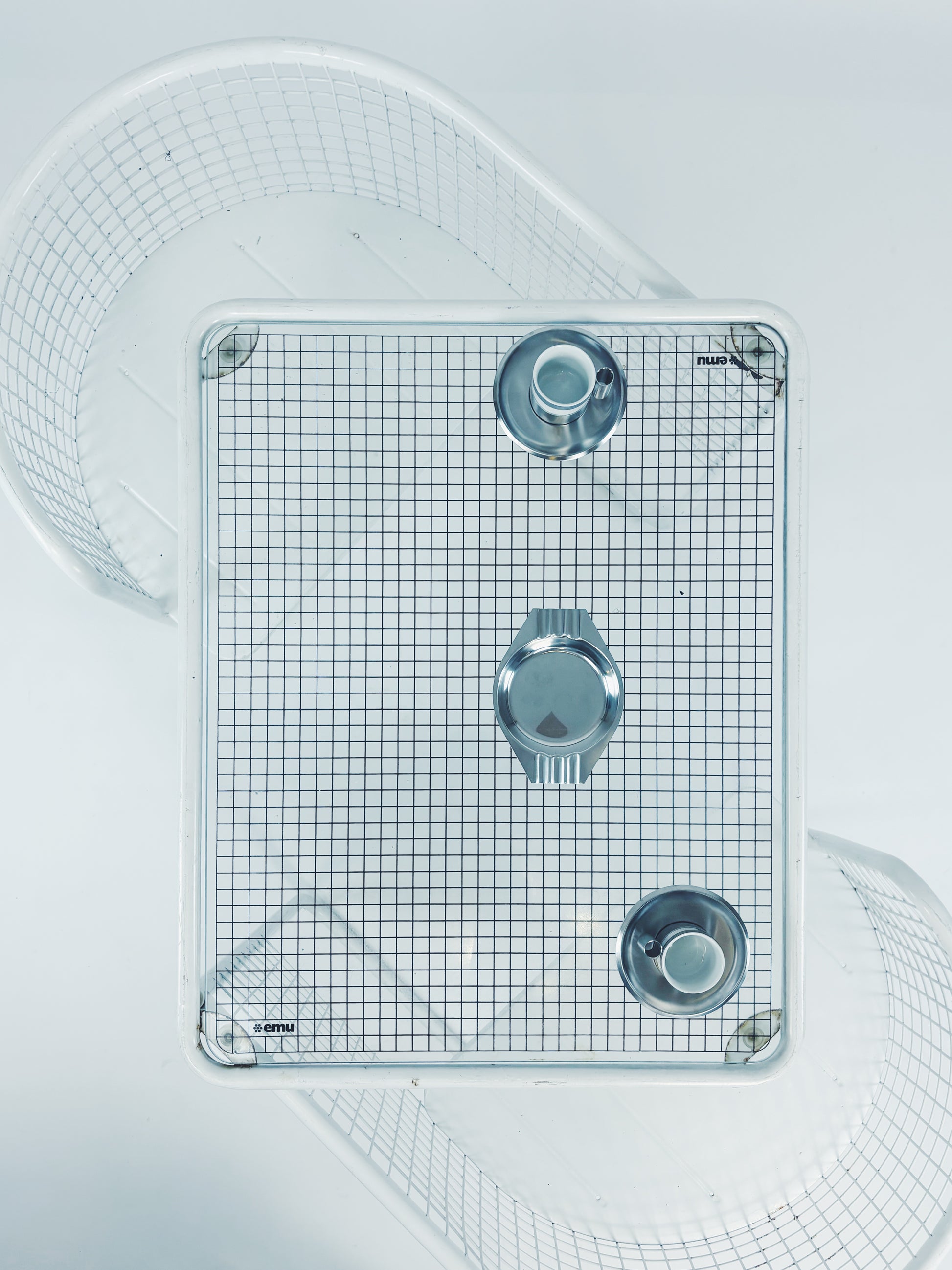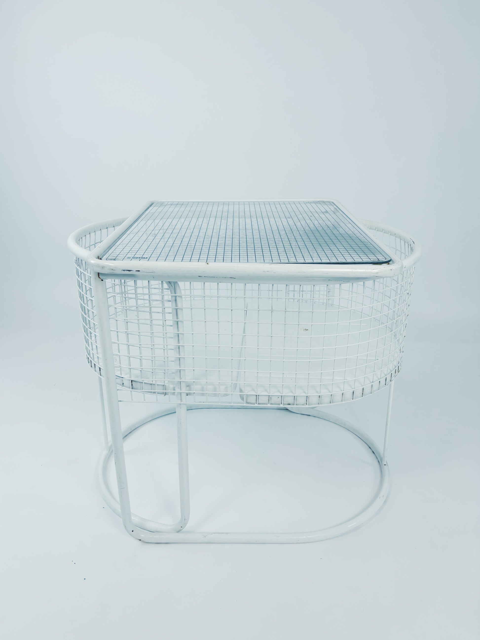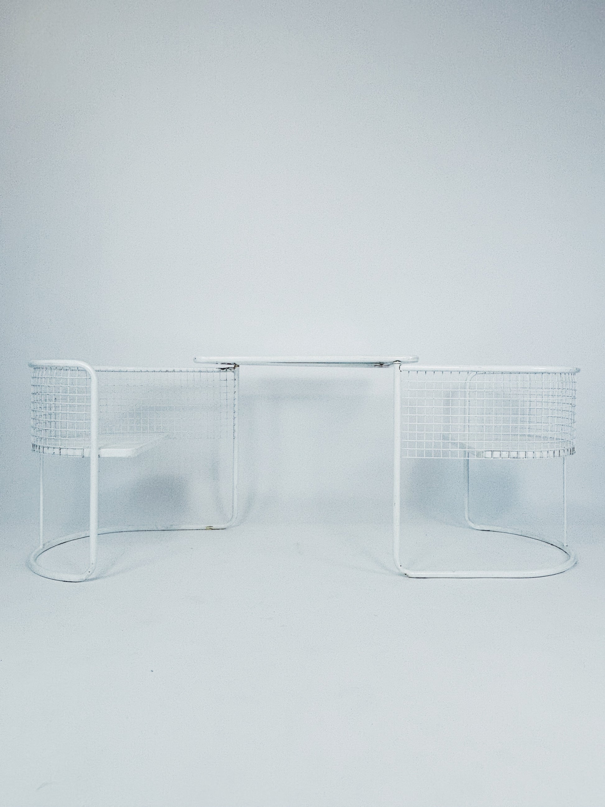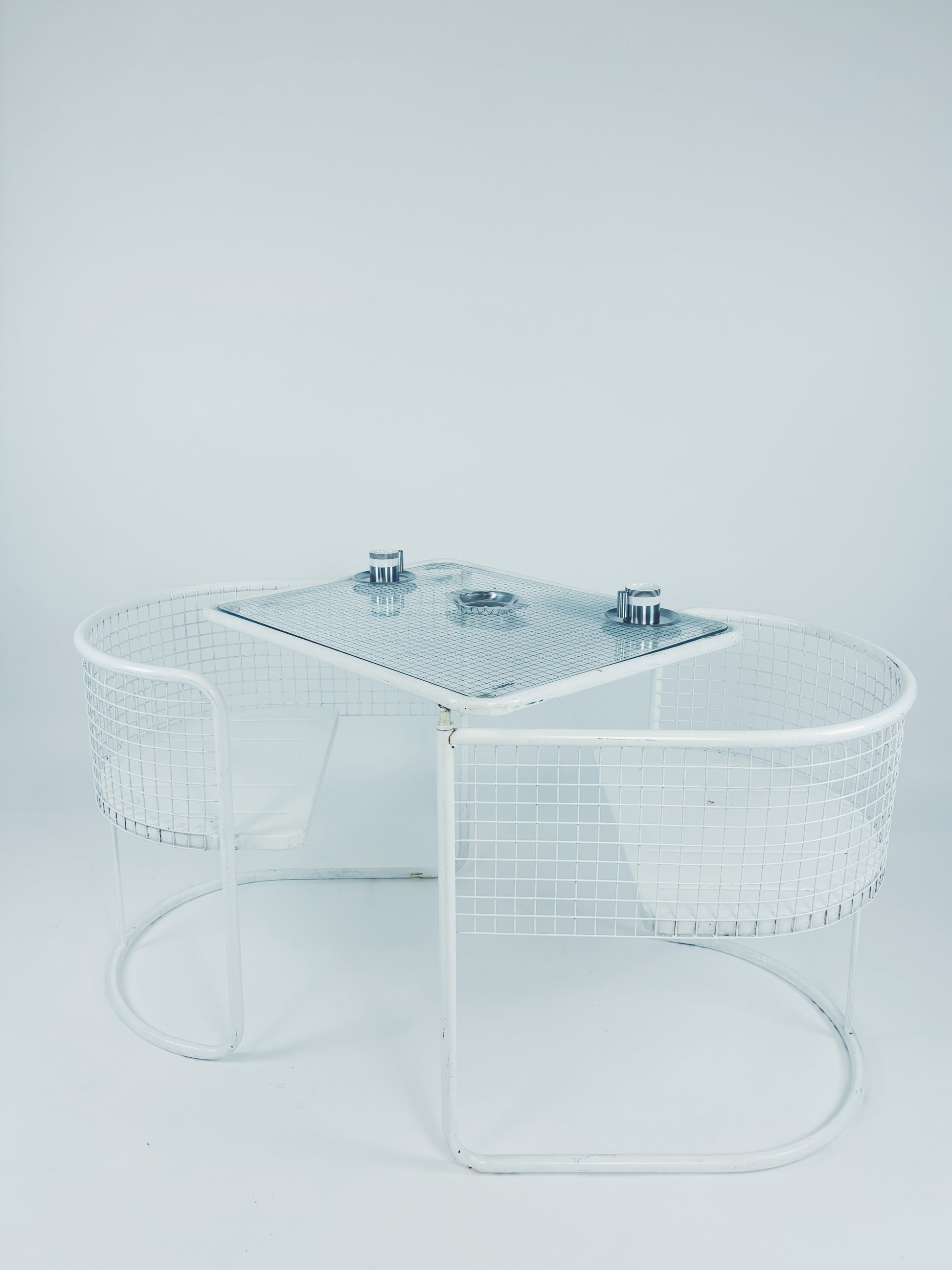 Gartenset hergestellt von Emu (Italien) in den 80ern. Weiß lackierter Metallrahmen mit Glasplatte. Zusammenklappbar.