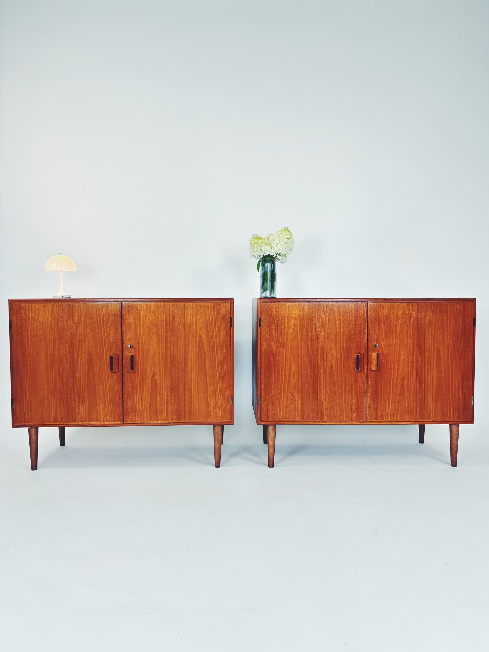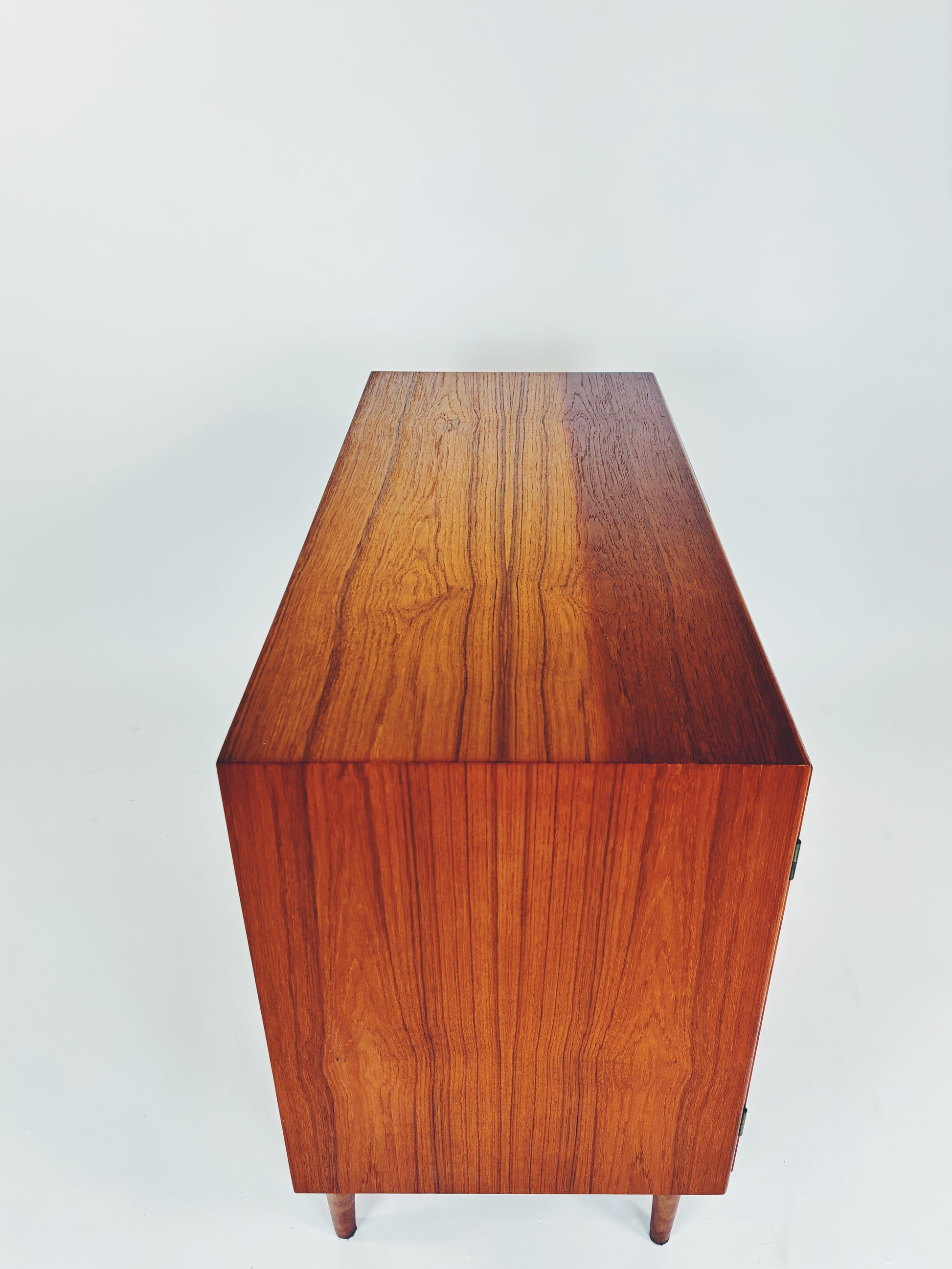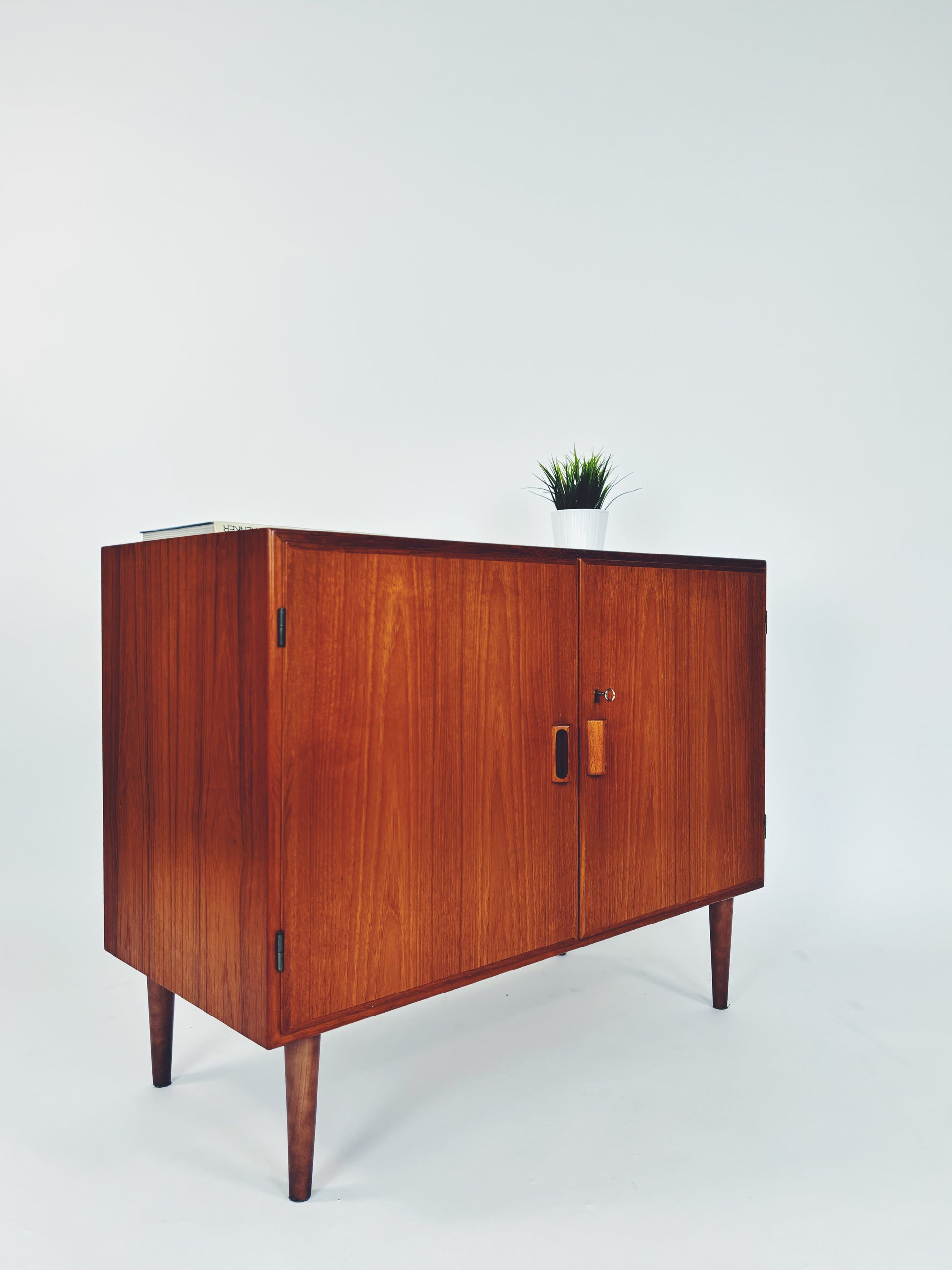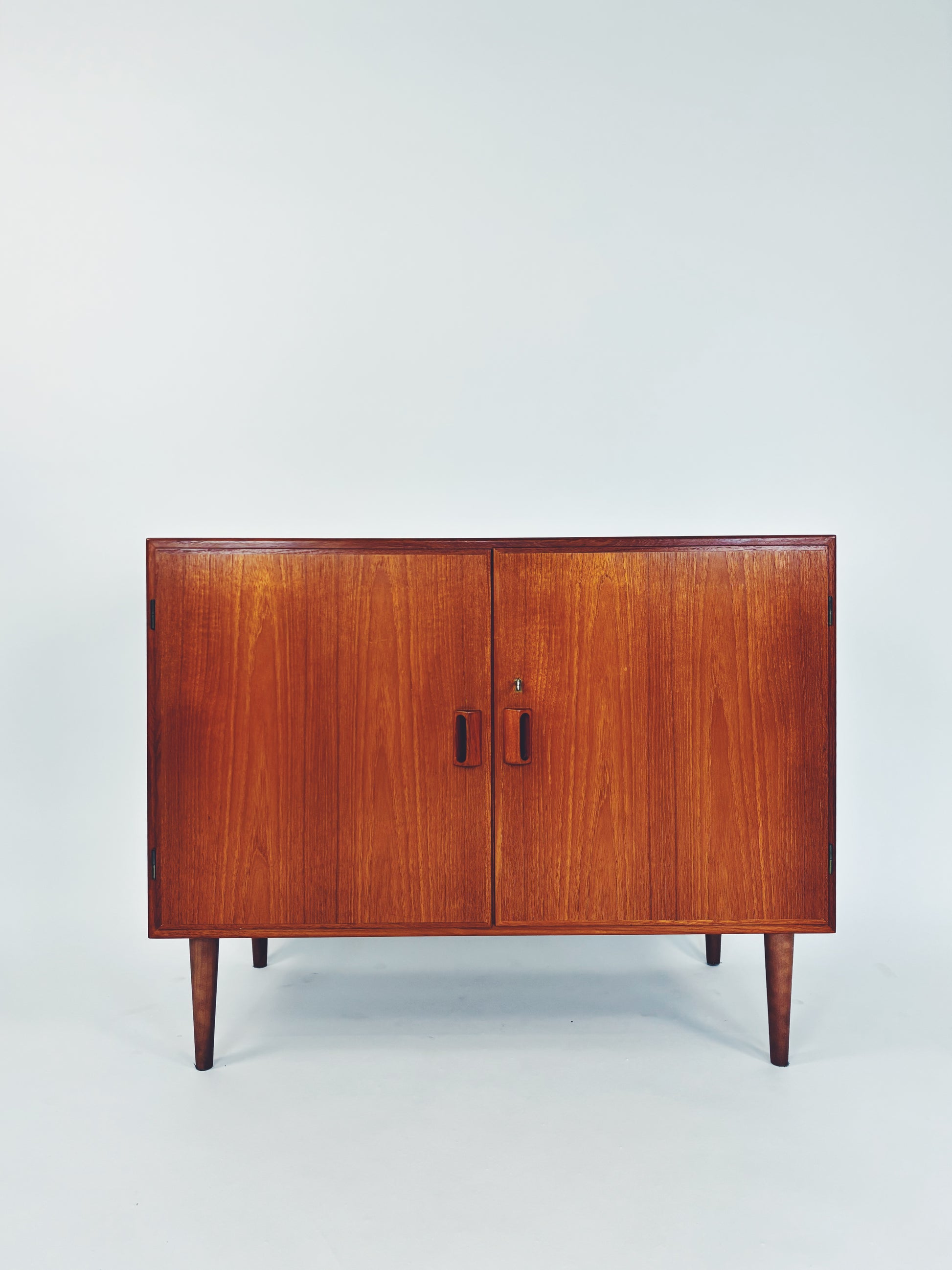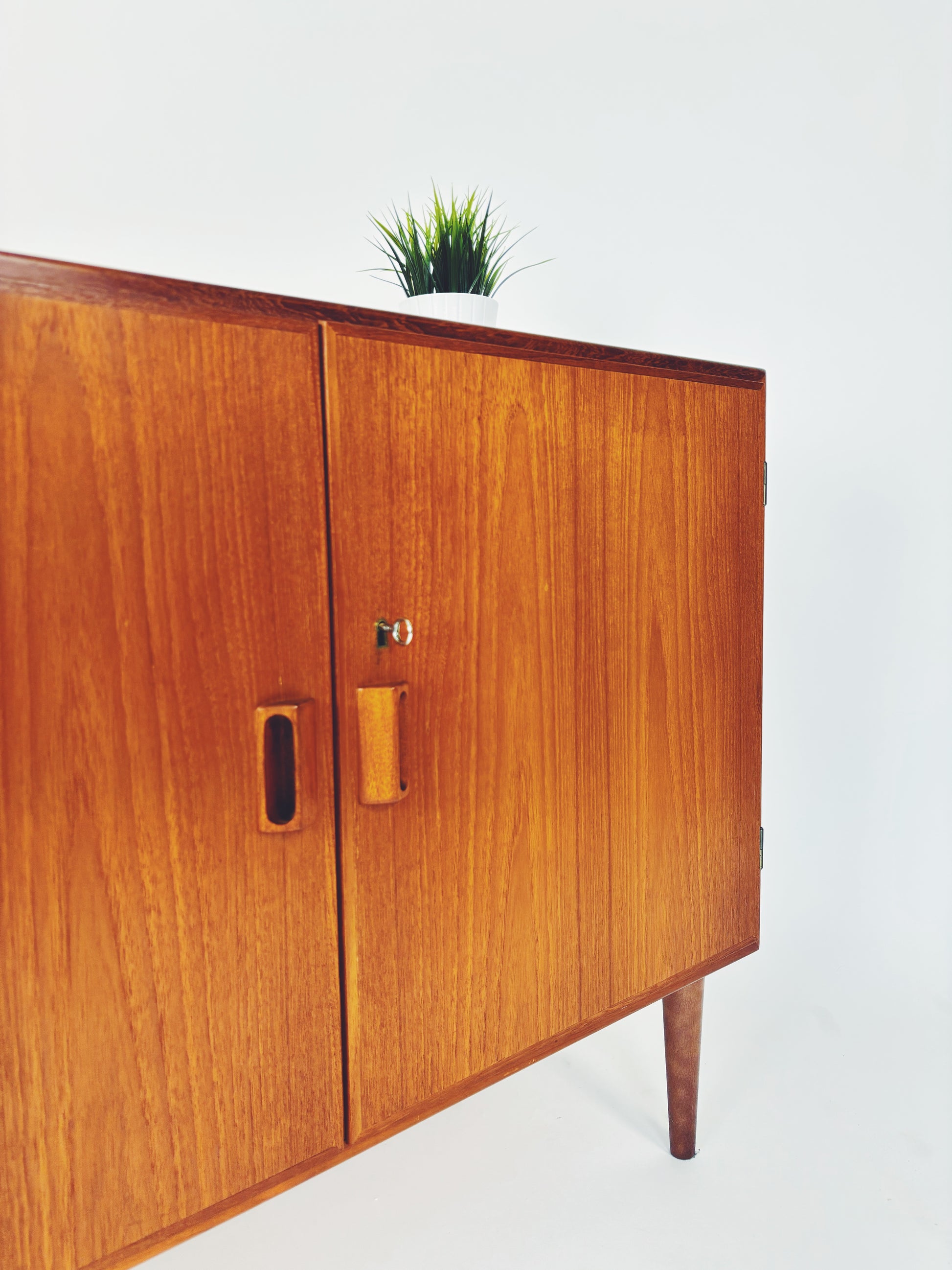 Die Kommode von Børge Mogensen für Søborg Møbelfabrik aus hochwertigem Teakholz hat zwei abschließbare Klapptüren. Originalschlüssel vorhanden.