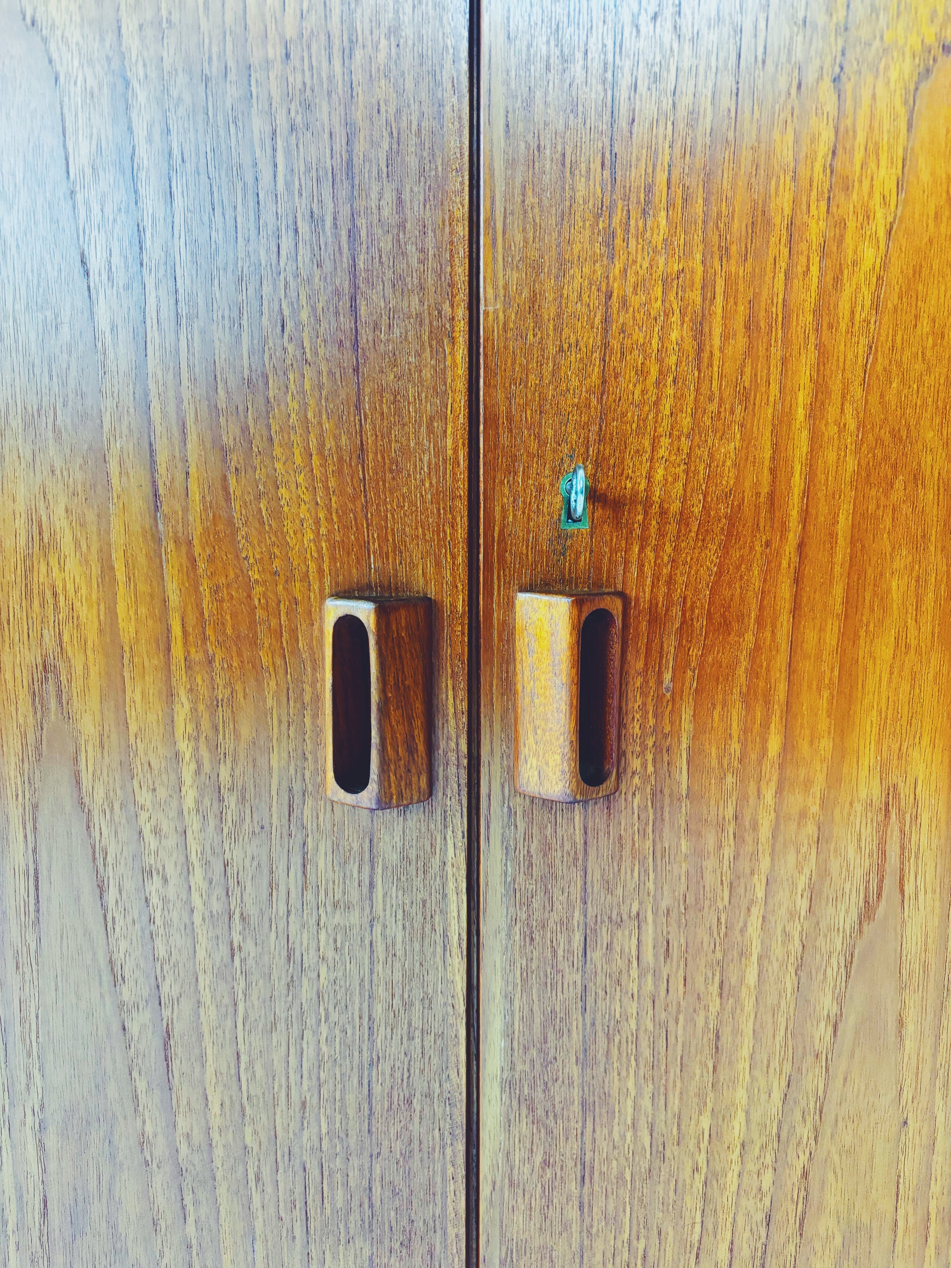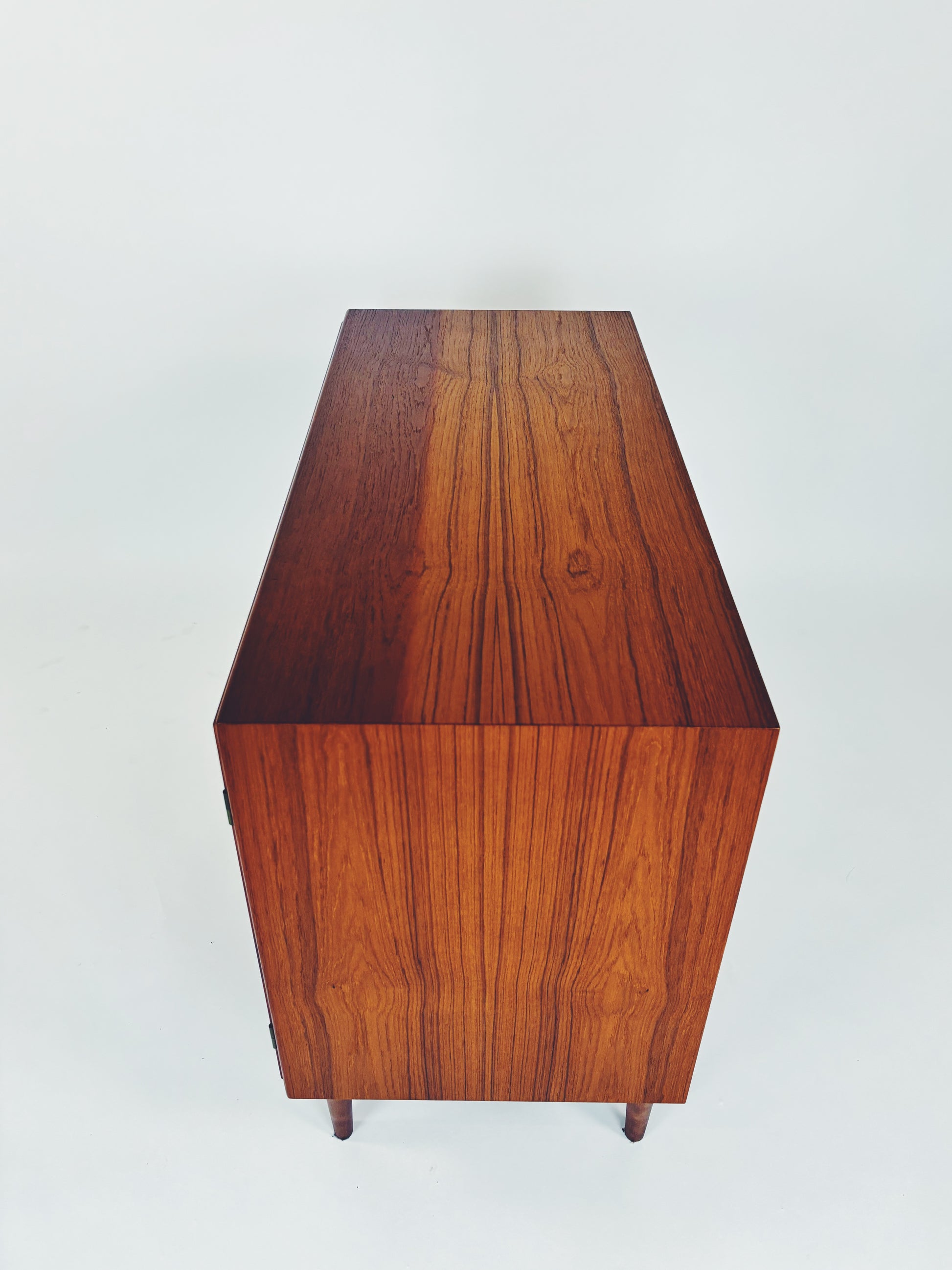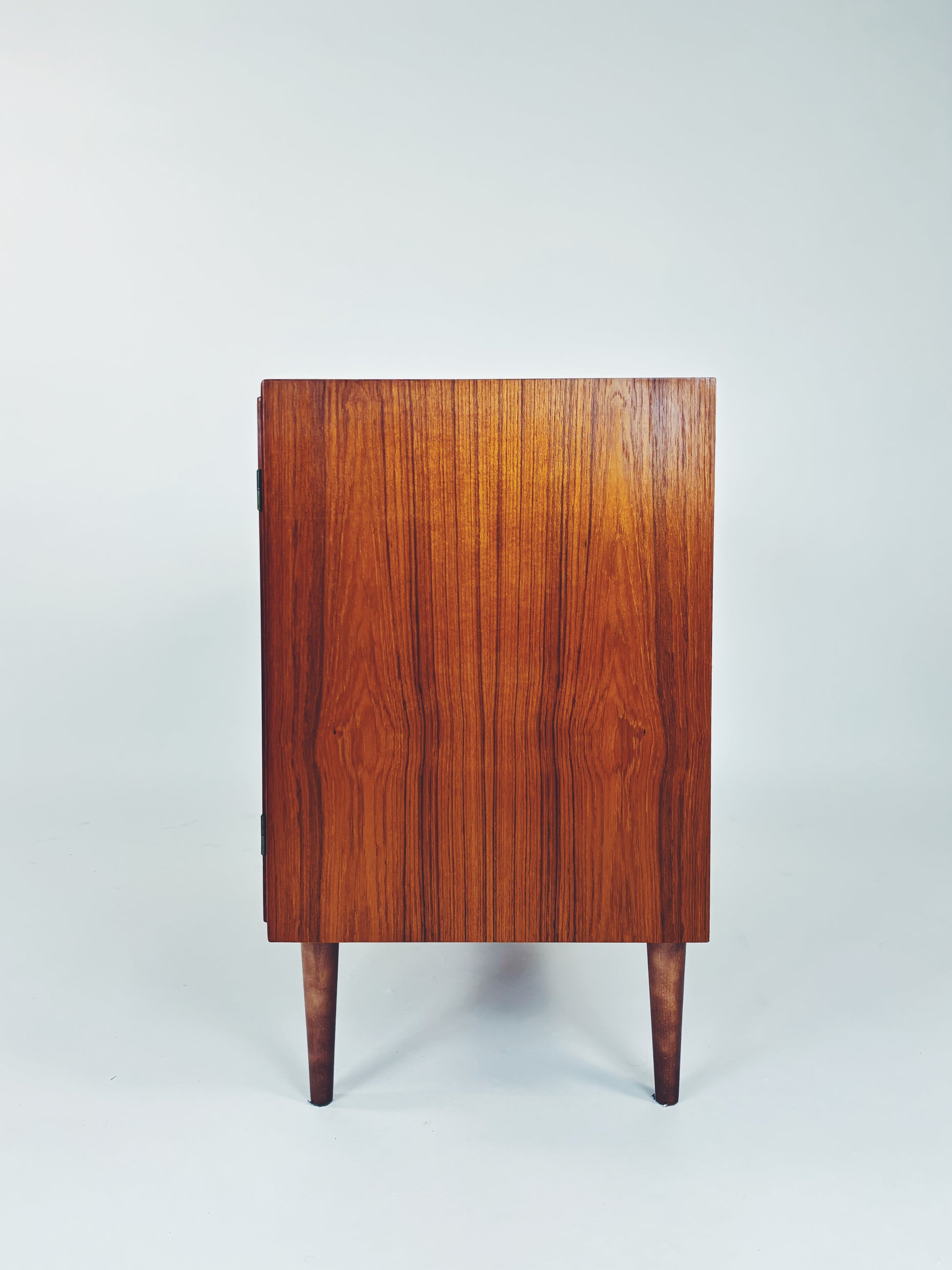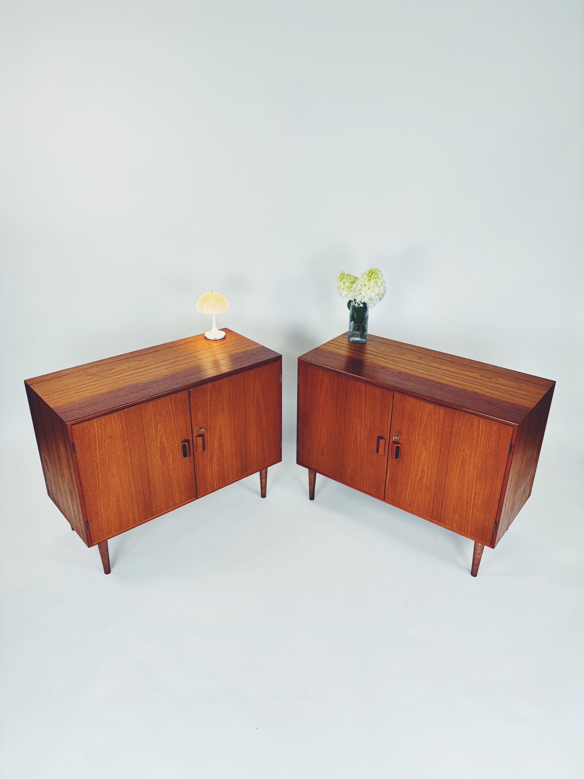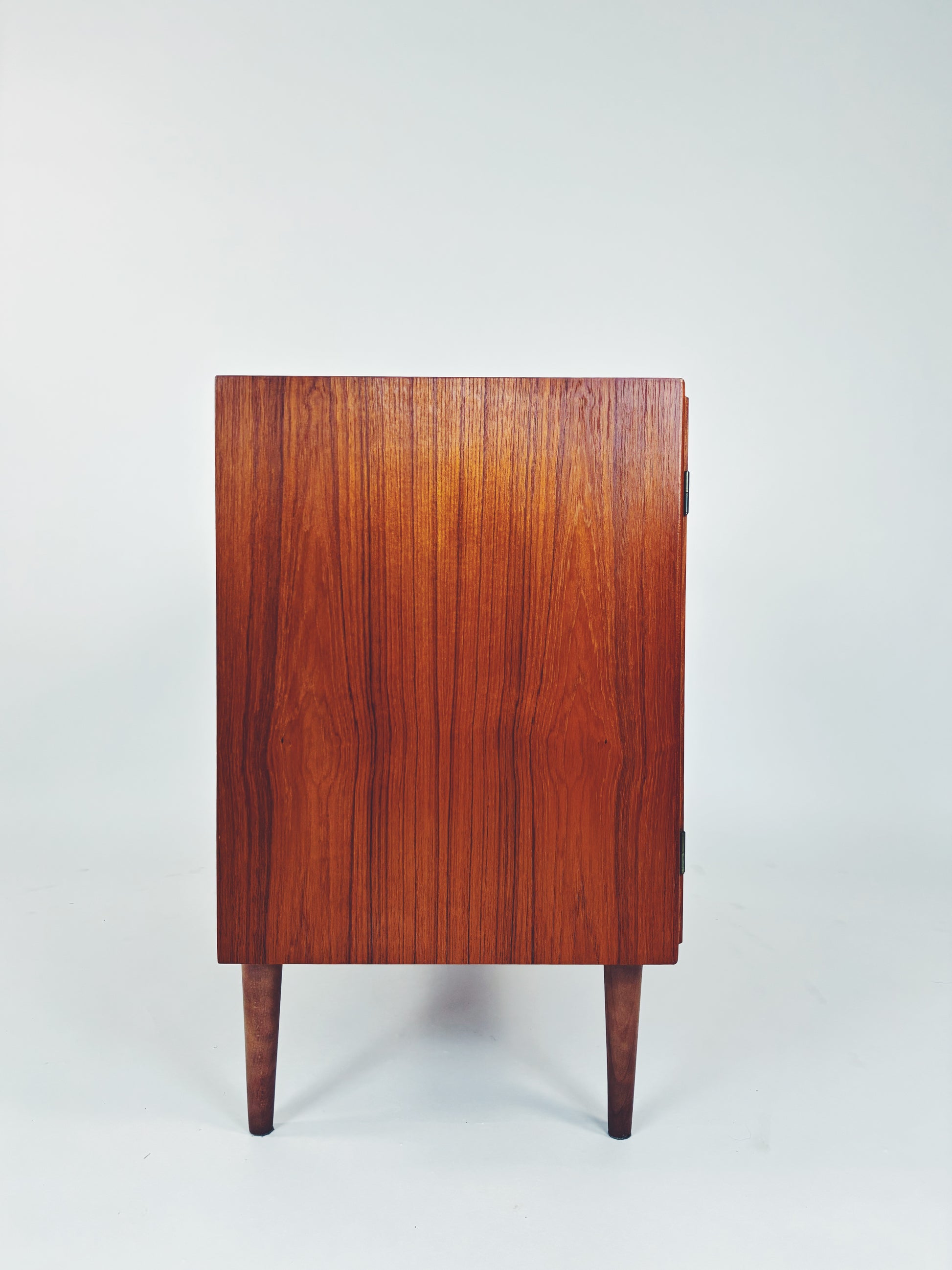 Die Kommode von Børge Mogensen für Søborg Møbelfabrik aus hochwertigem Teakholz hat zwei abschließbare Klapptüren. Originalschlüssel vorhanden.