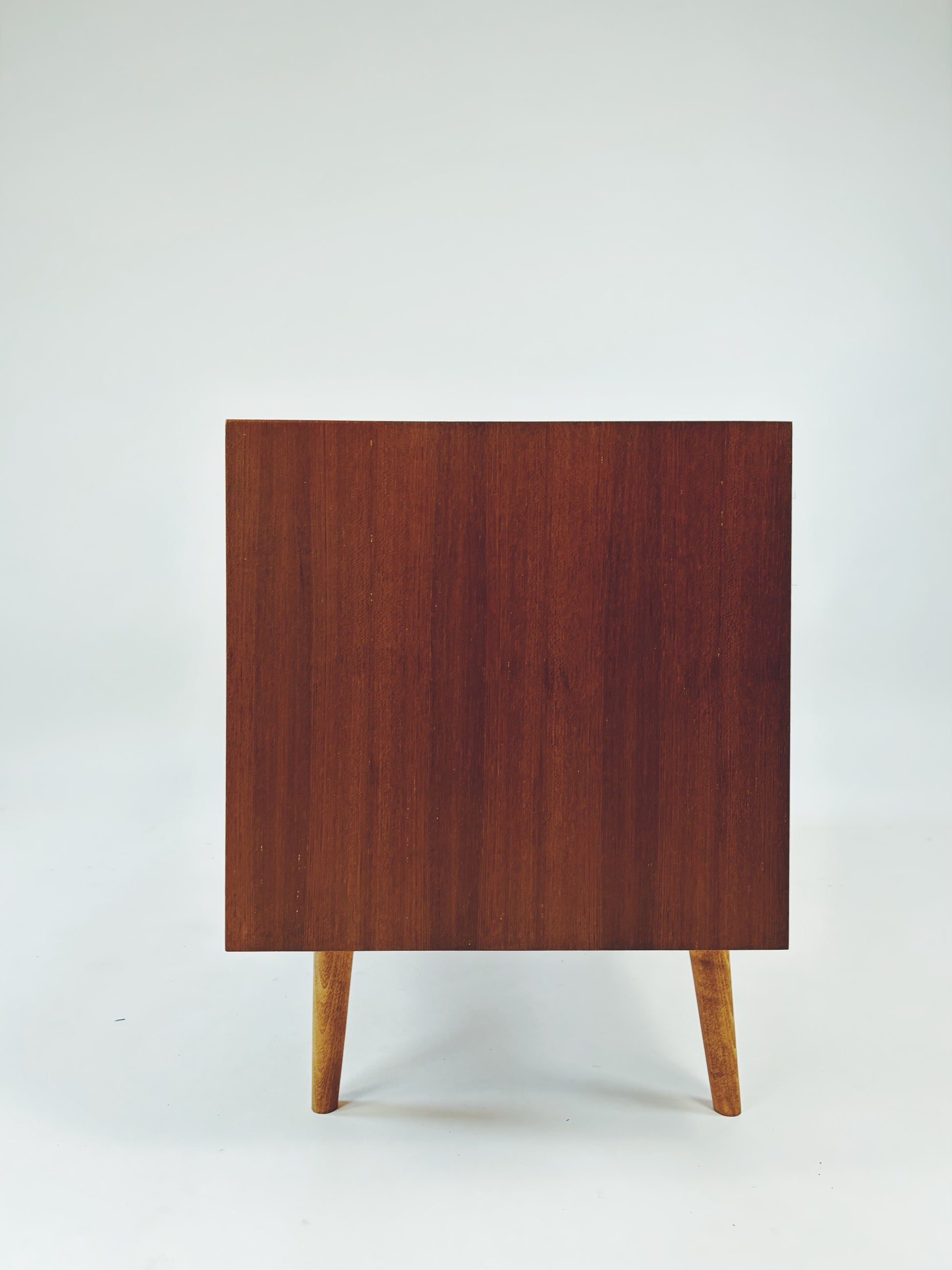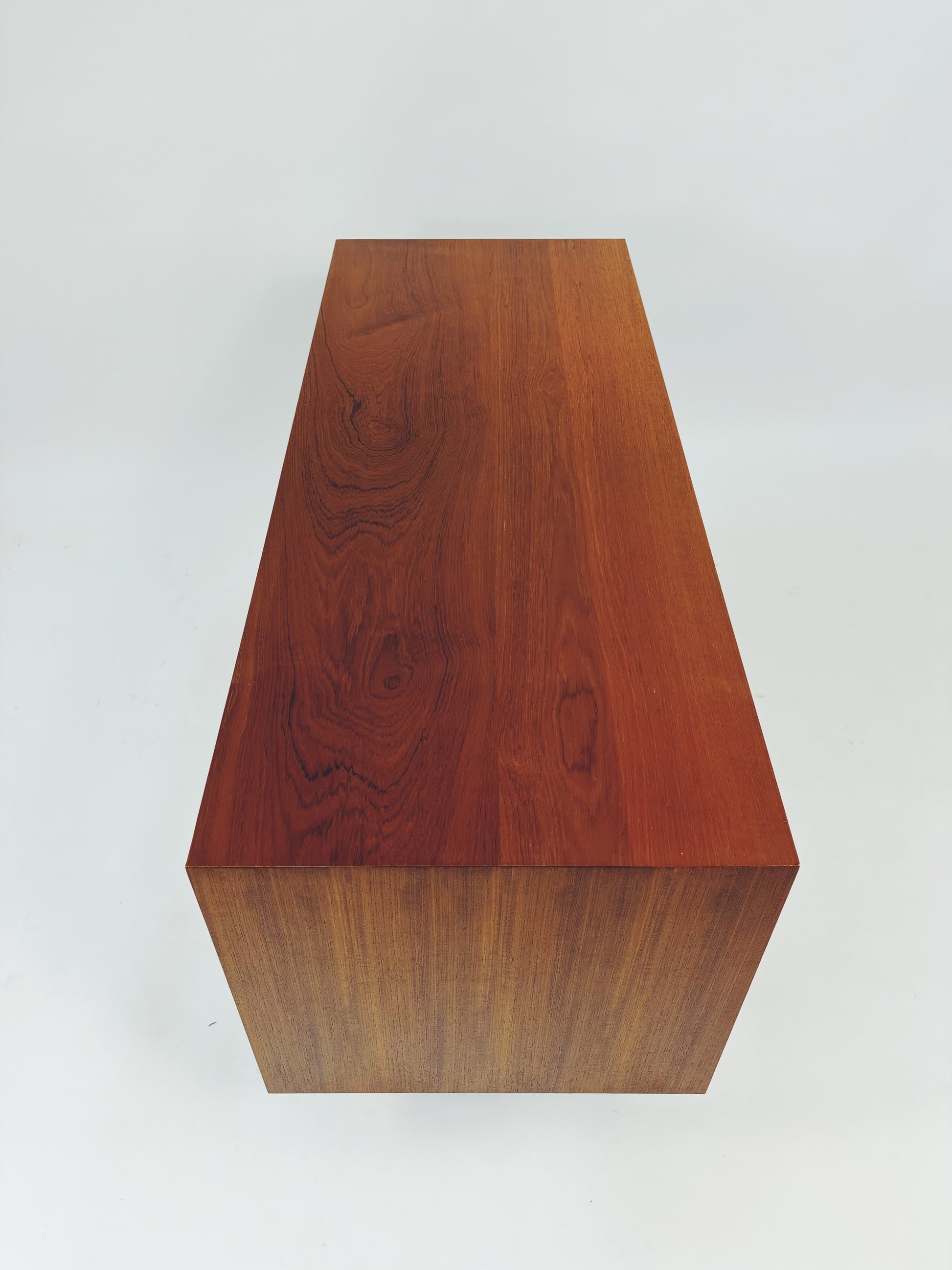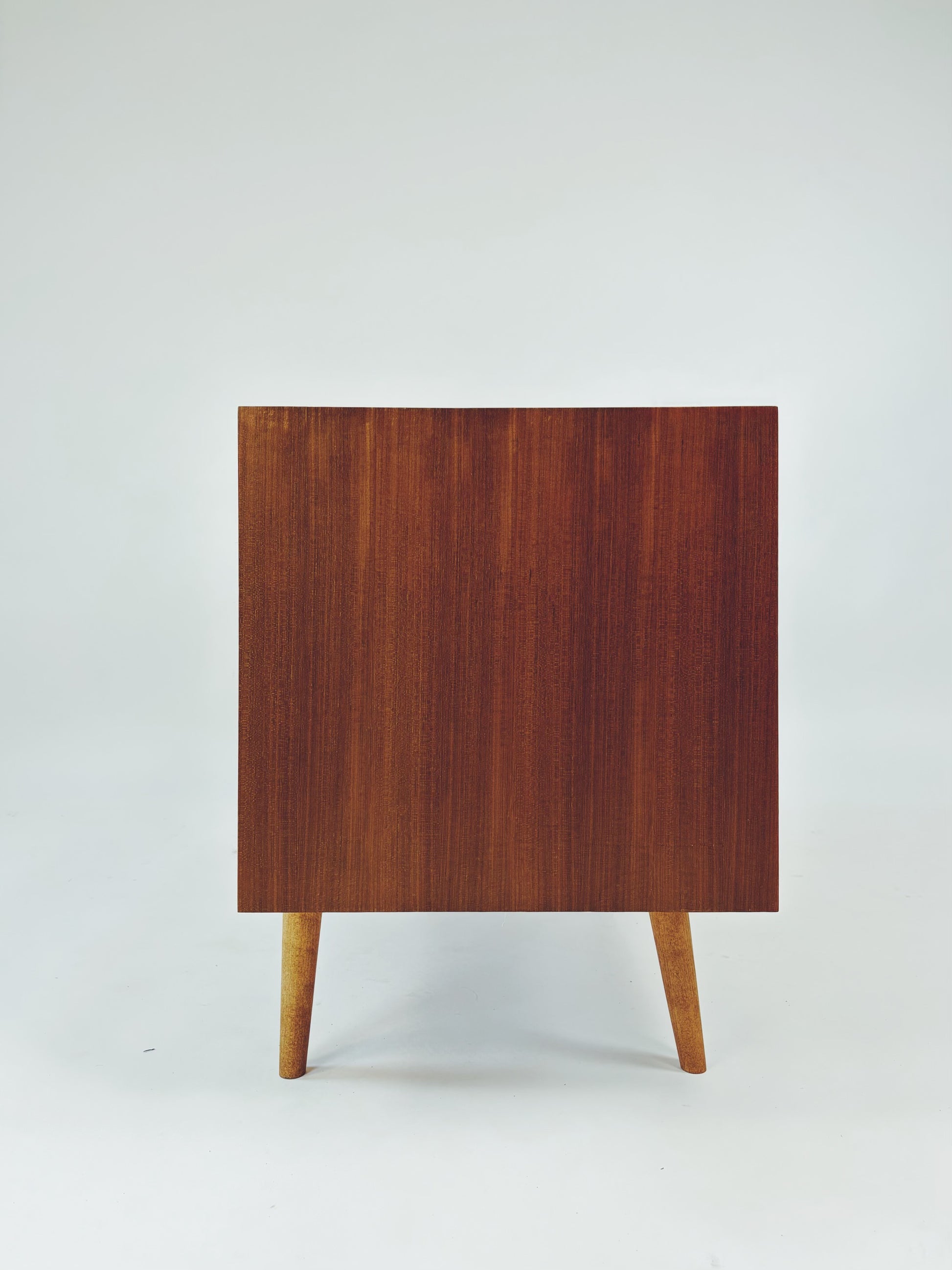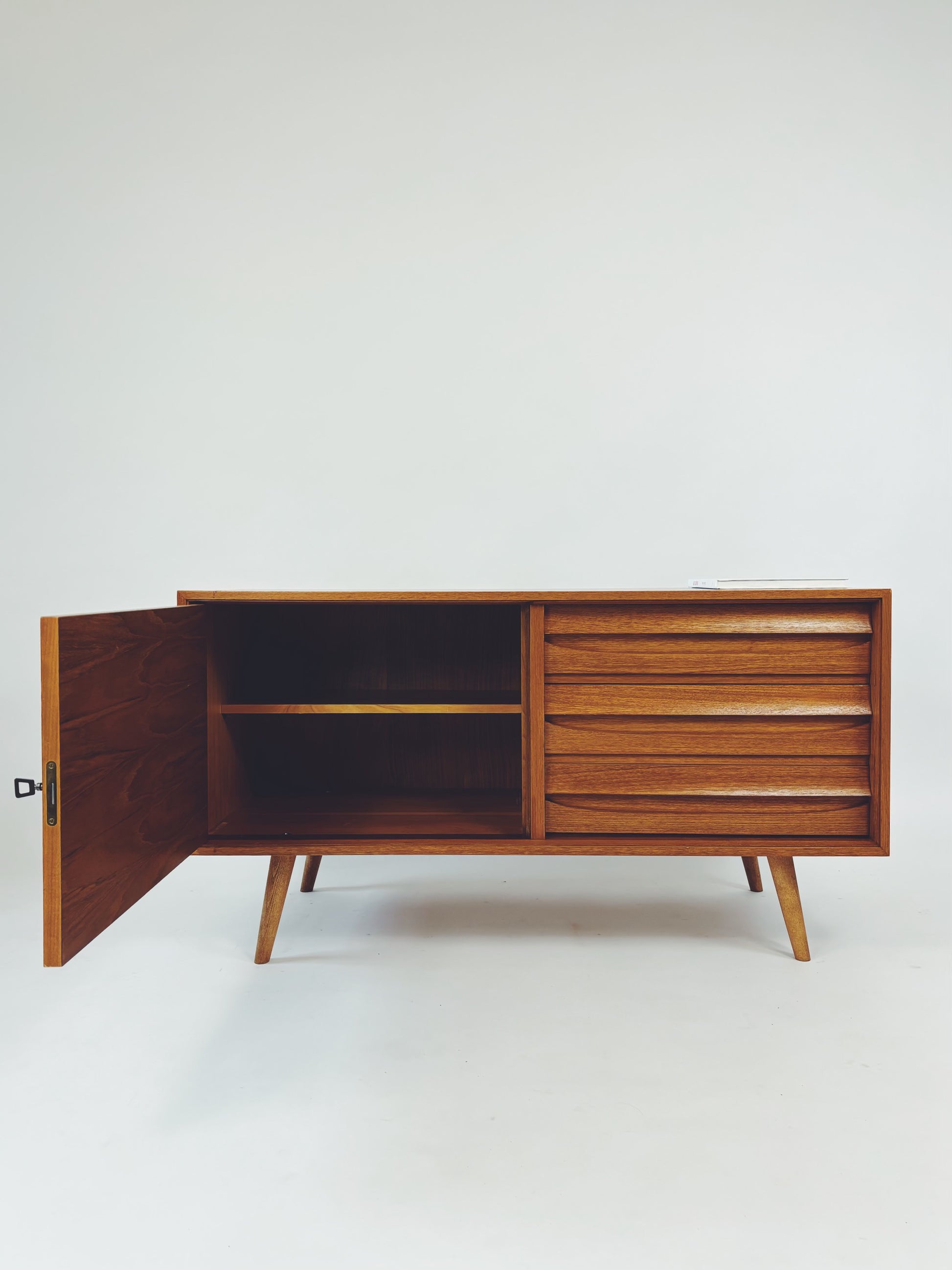 Formschöne Mid-Century Kommode aus Eichenholz von Franzmeyer Möbel aus den 60er Jahren. Besonders hervorzuheben sind die 3 aufwendig gearbeiteten Laden mit versteckter Griffmulde.