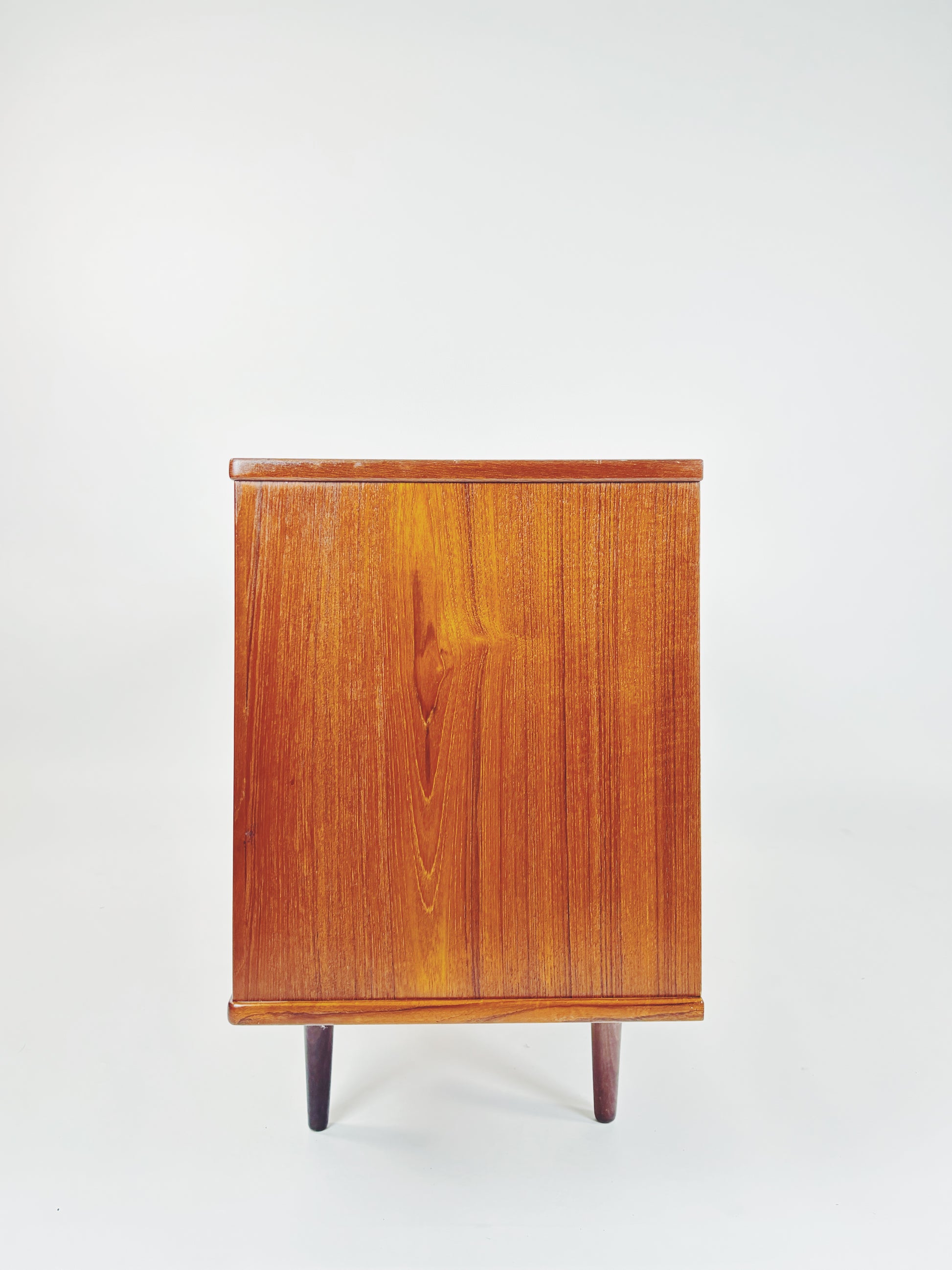 Die warme Ausstrahlung des Teakholzes, kombiniert mit der handwerklich präzisen Verarbeitung, macht dieses Sideboard zu einem zeitlosen Klassiker – formvollendet, funktional und made in Denmark.