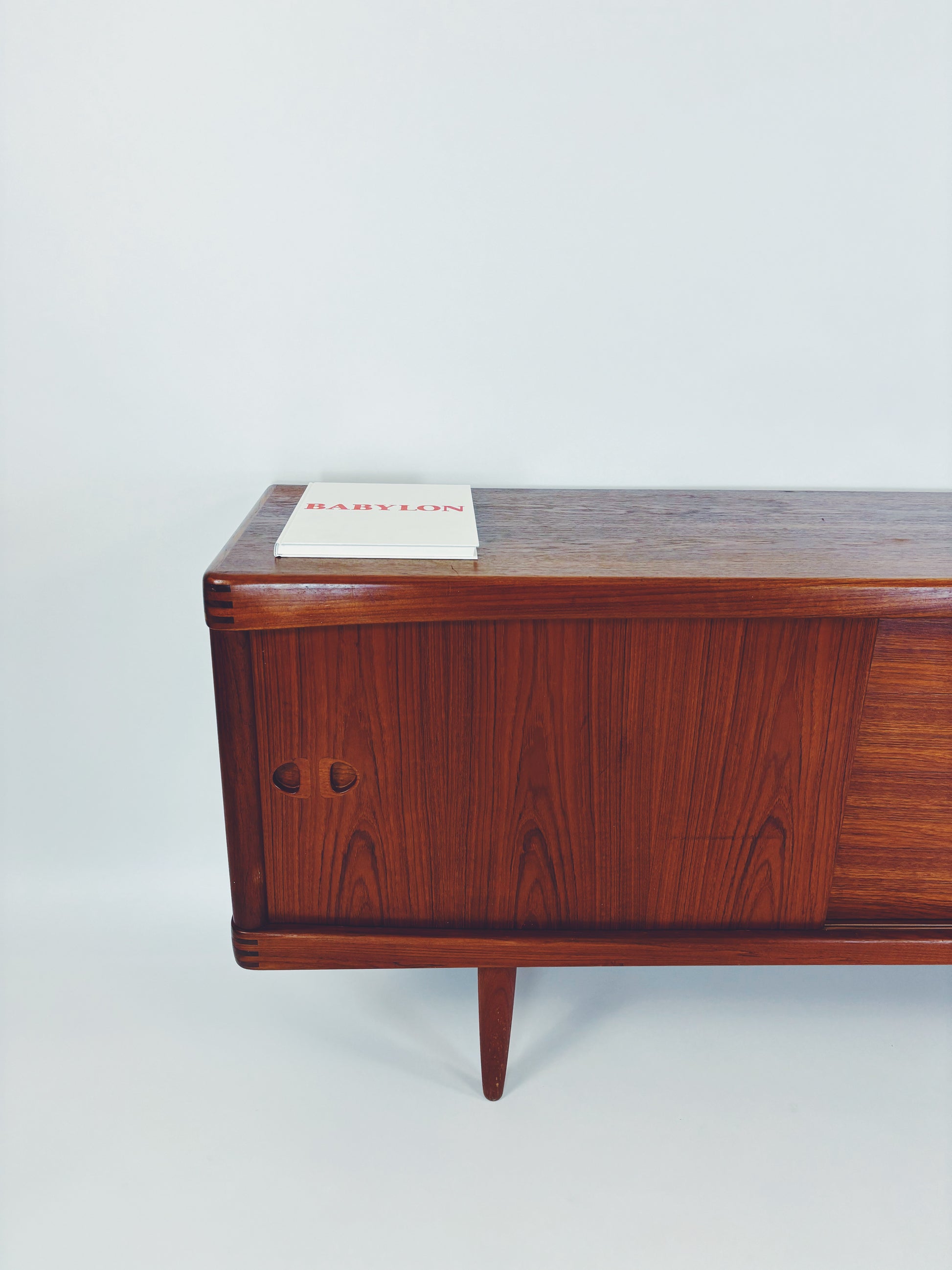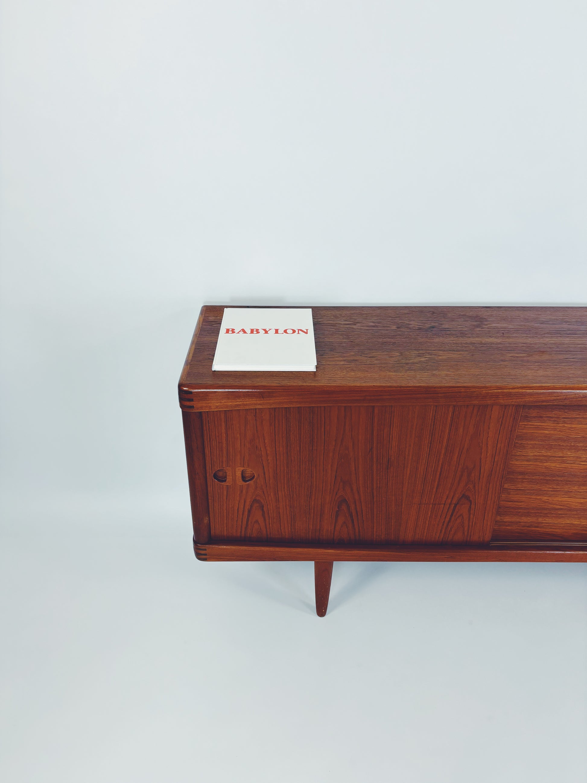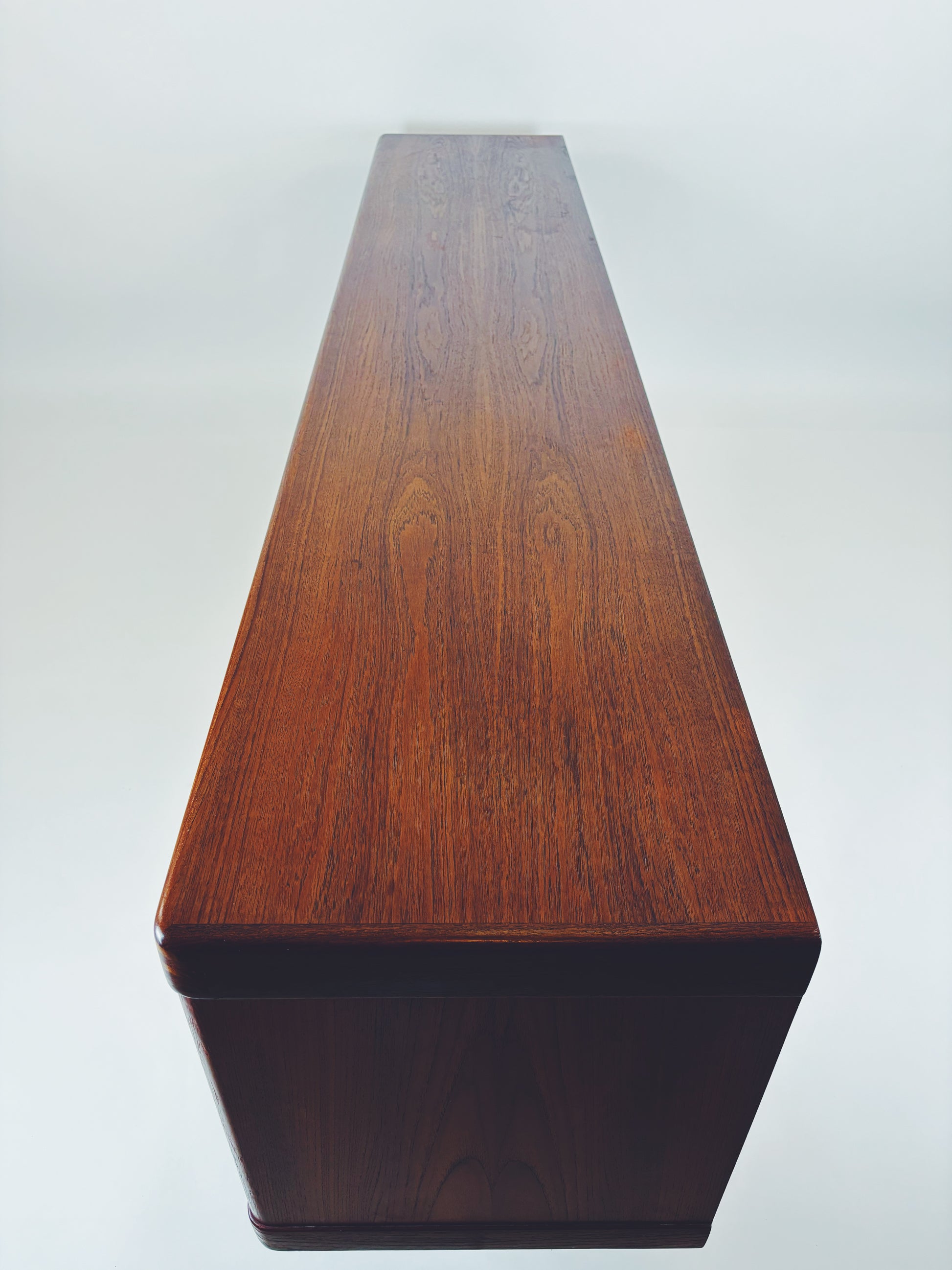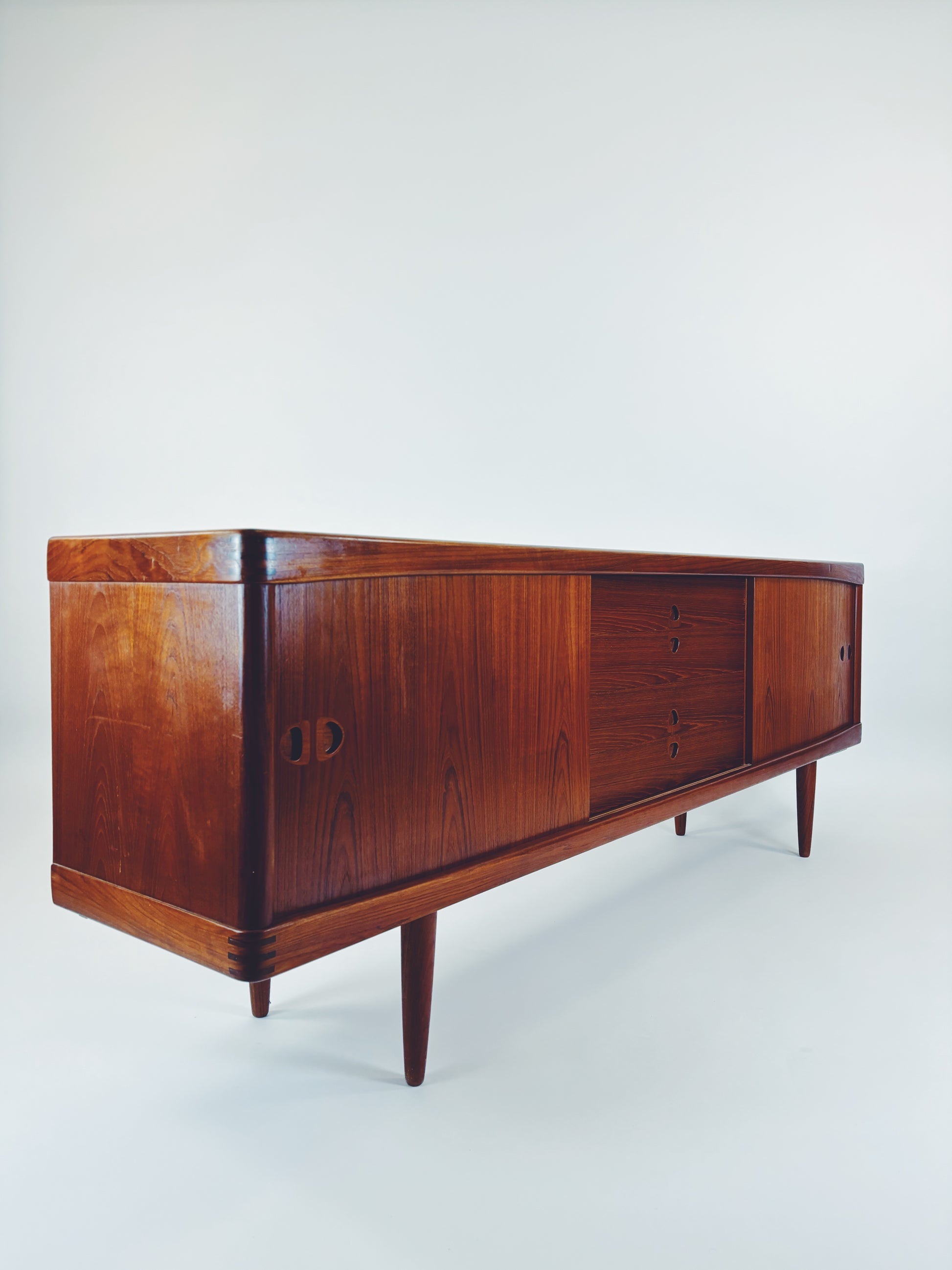 Imposantes Sideboard von HW Klein für Bramin Denmark. Die Schiebetüren laufen einwandfrei. Die Laden sind sauber und leichtgängig. Das Holz weist eine tolle Maserung auf. Die originalen Einlegeböden sind höhenverstellbar.