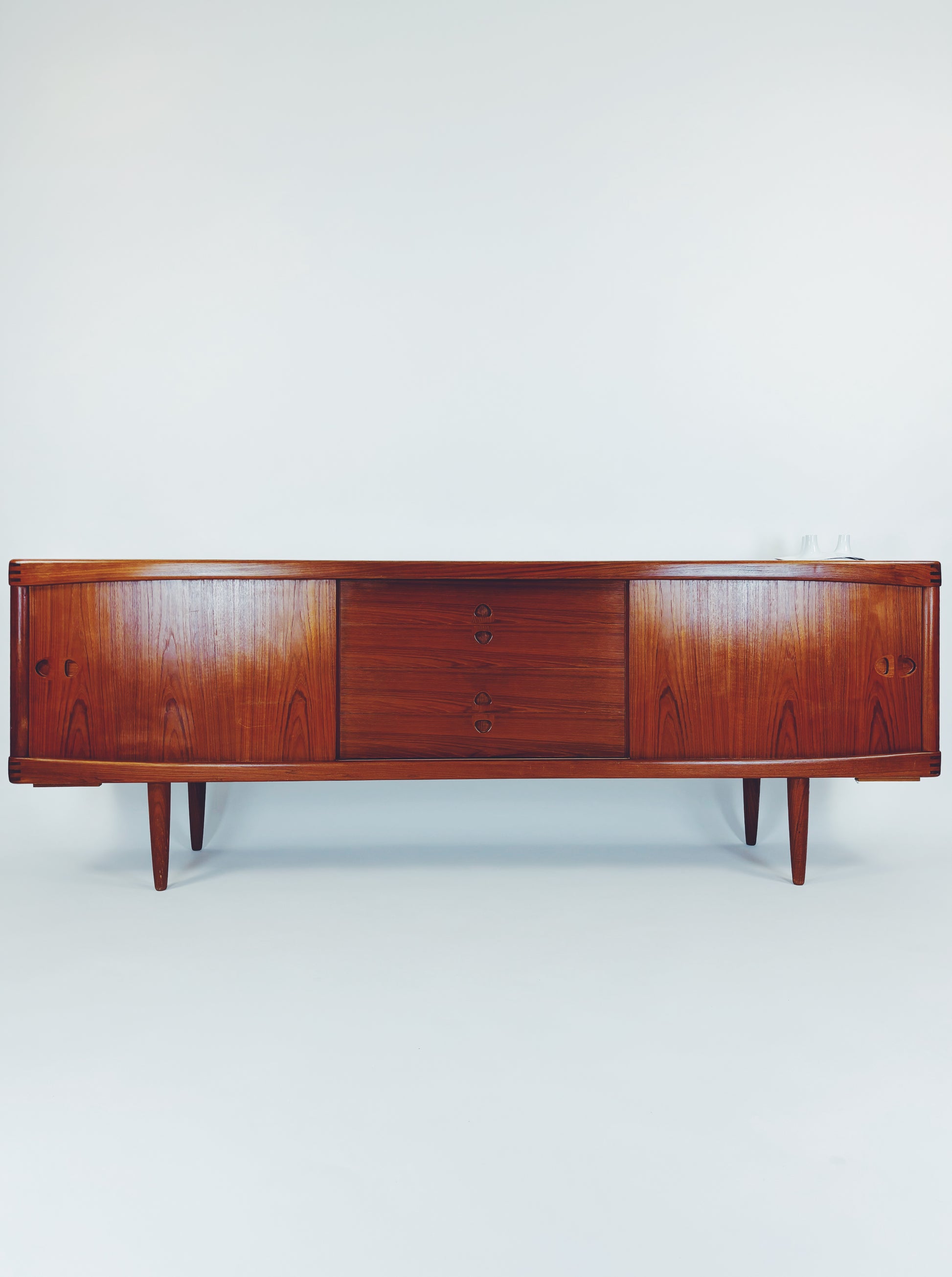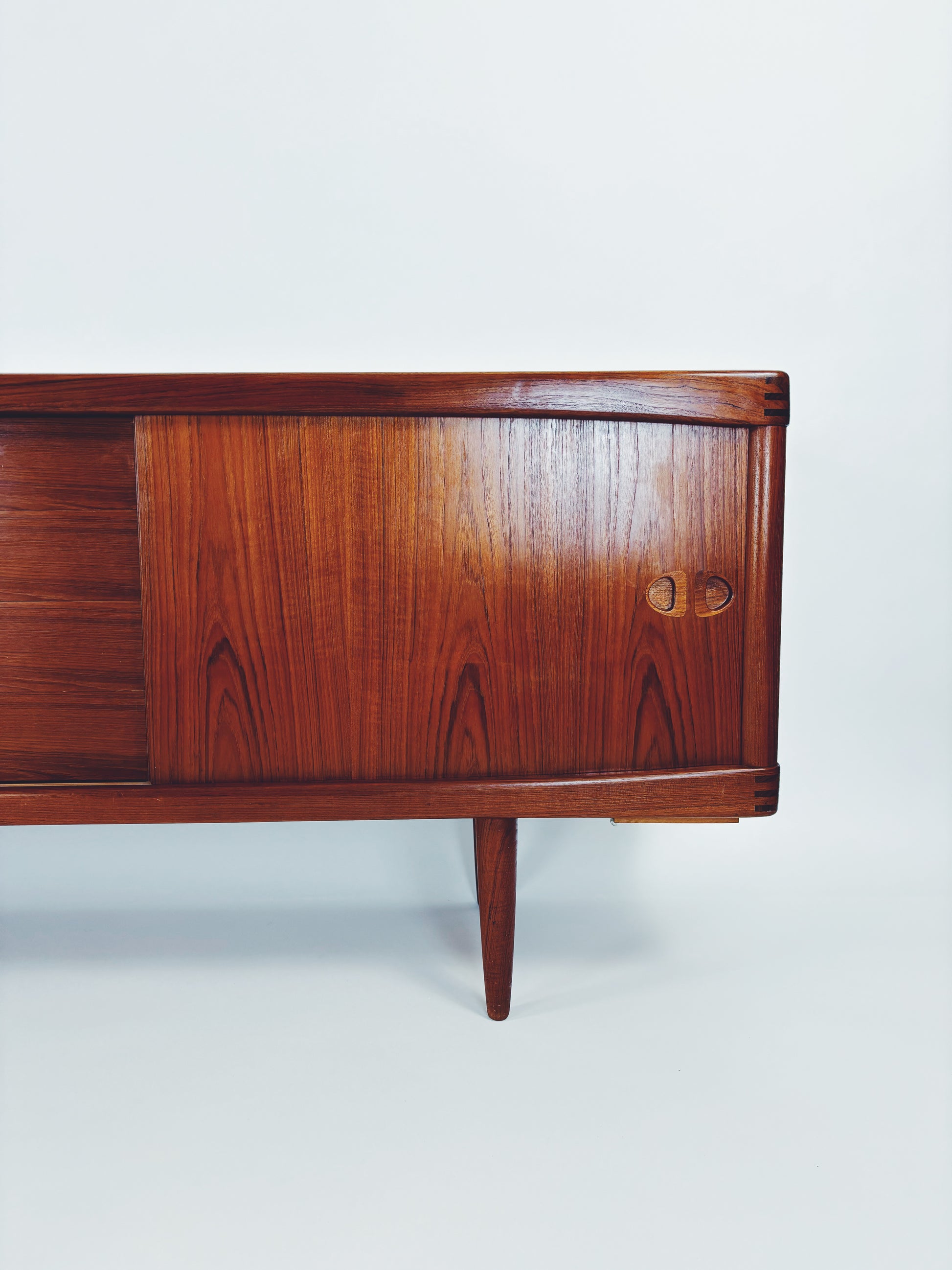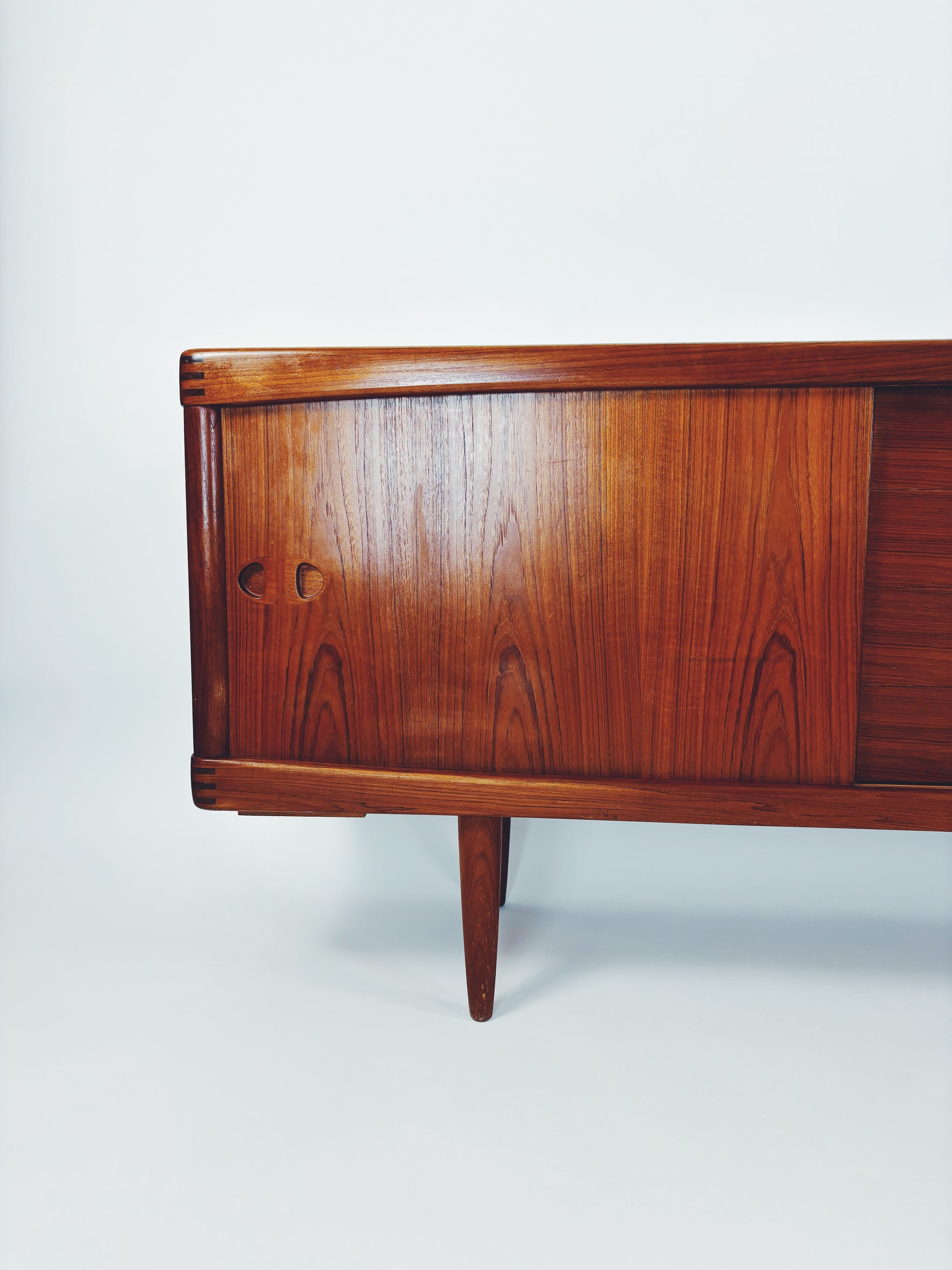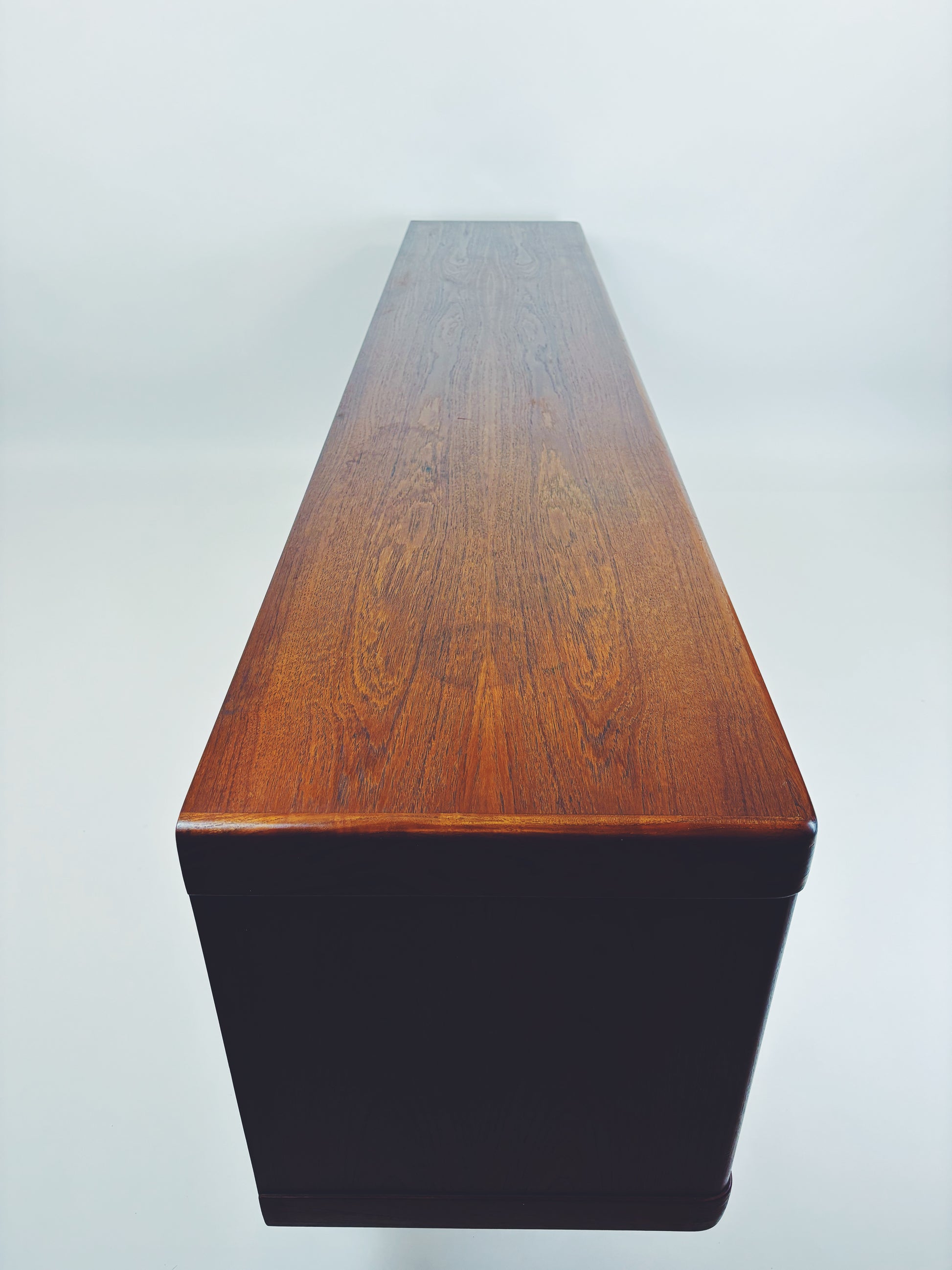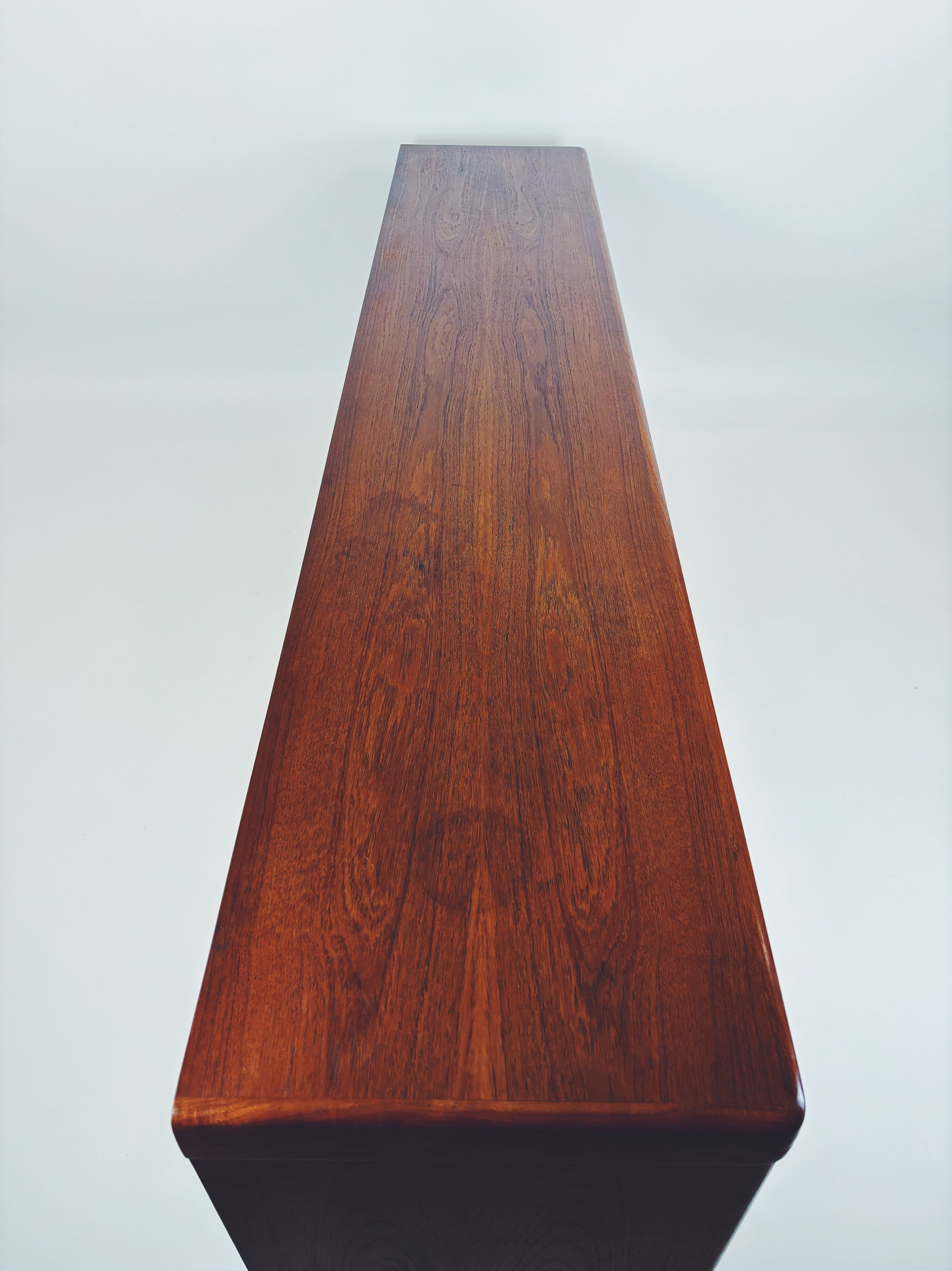 Imposantes Sideboard von HW Klein für Bramin Denmark. Die Schiebetüren laufen einwandfrei. Die Laden sind sauber und leichtgängig. Das Holz weist eine tolle Maserung auf. Die originalen Einlegeböden sind höhenverstellbar.