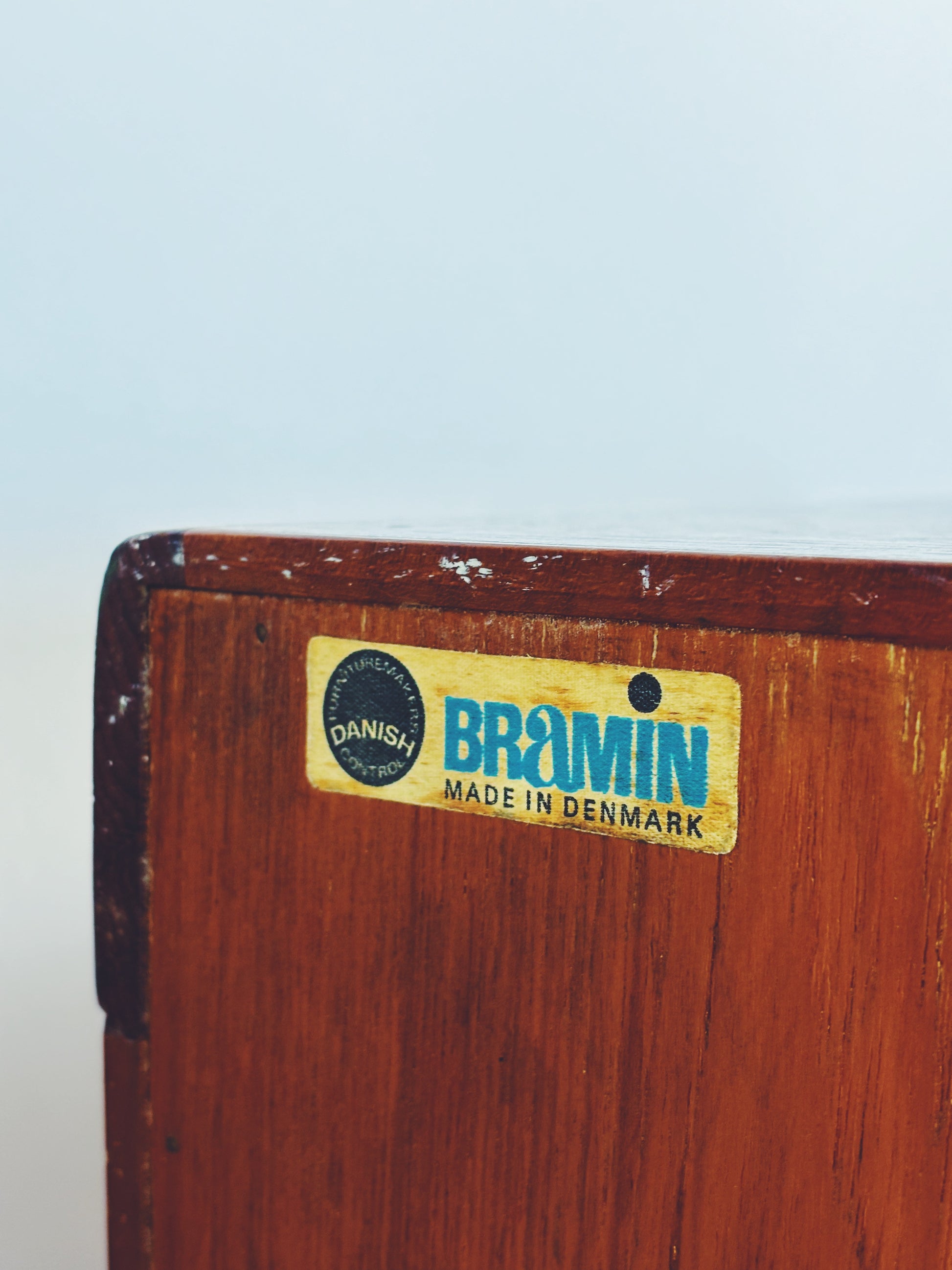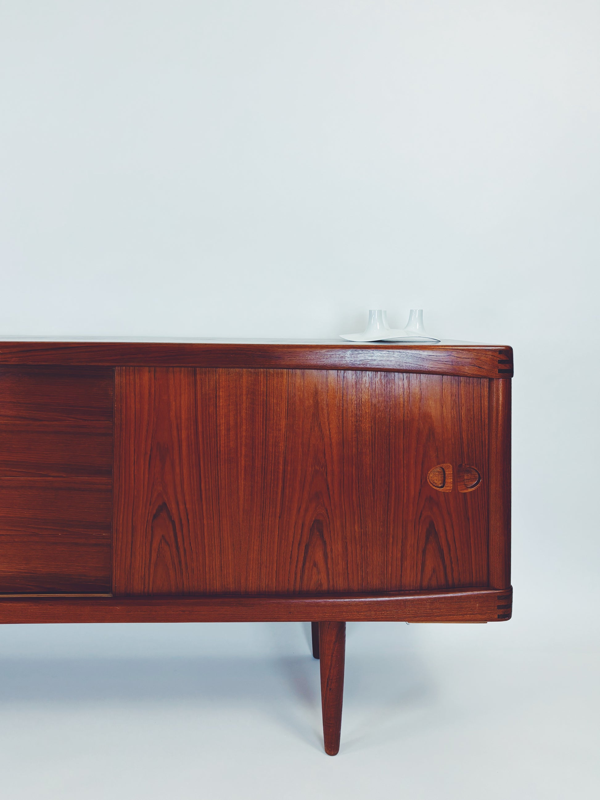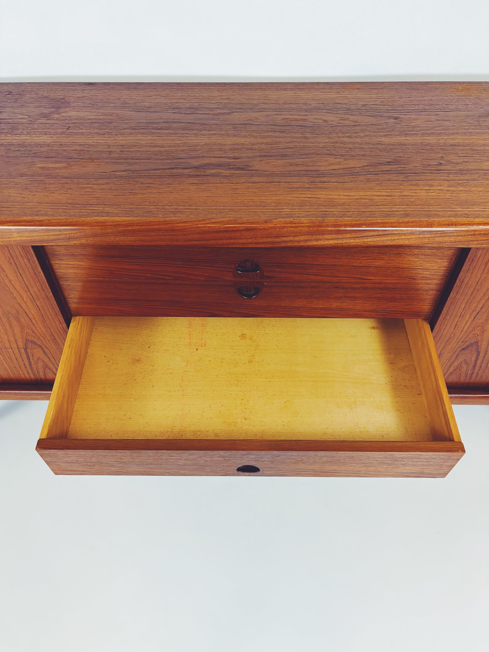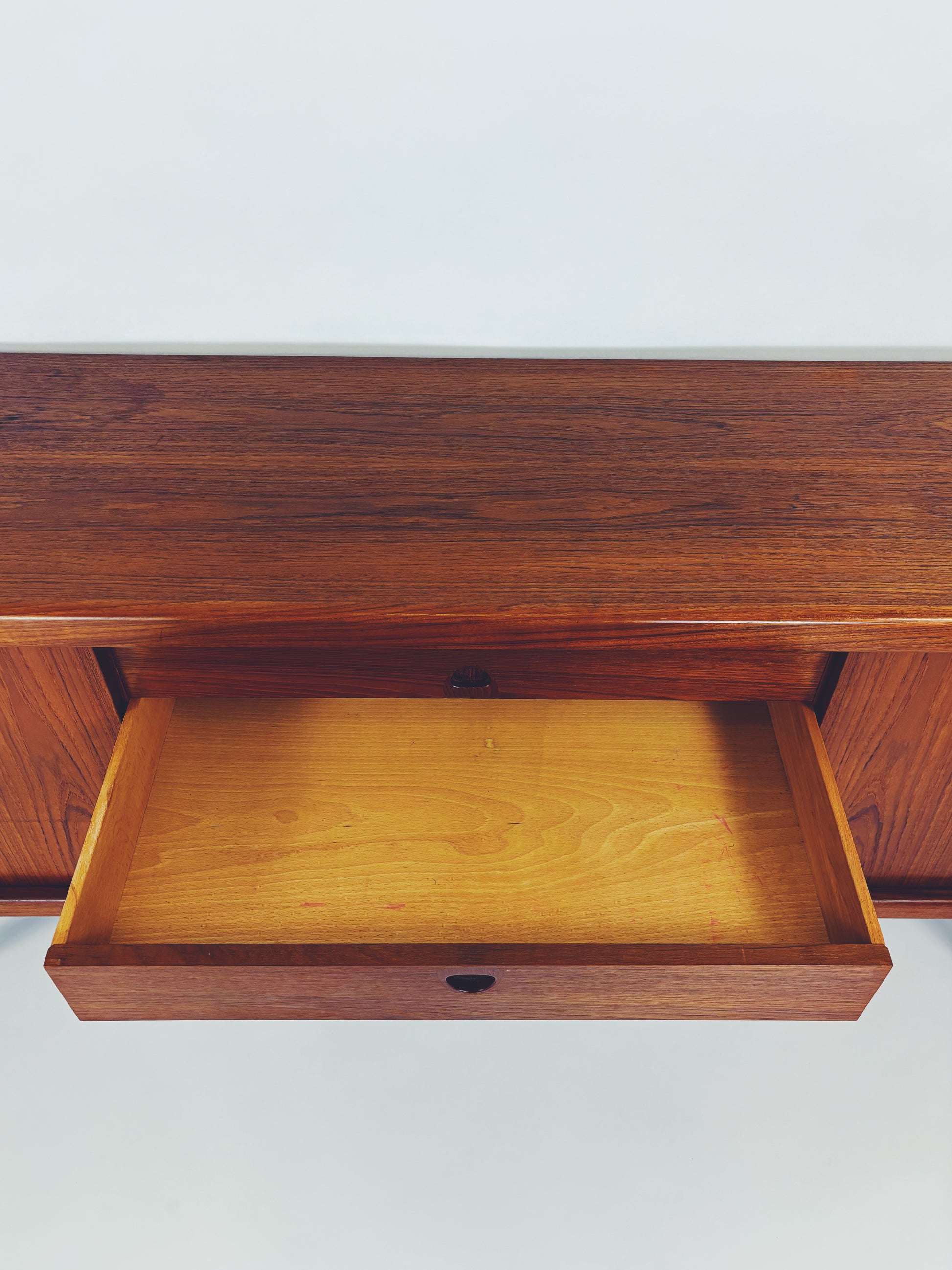 Imposantes Sideboard von HW Klein für Bramin Denmark. Die Schiebetüren laufen einwandfrei. Die Laden sind sauber und leichtgängig. Das Holz weist eine tolle Maserung auf. Die originalen Einlegeböden sind höhenverstellbar.