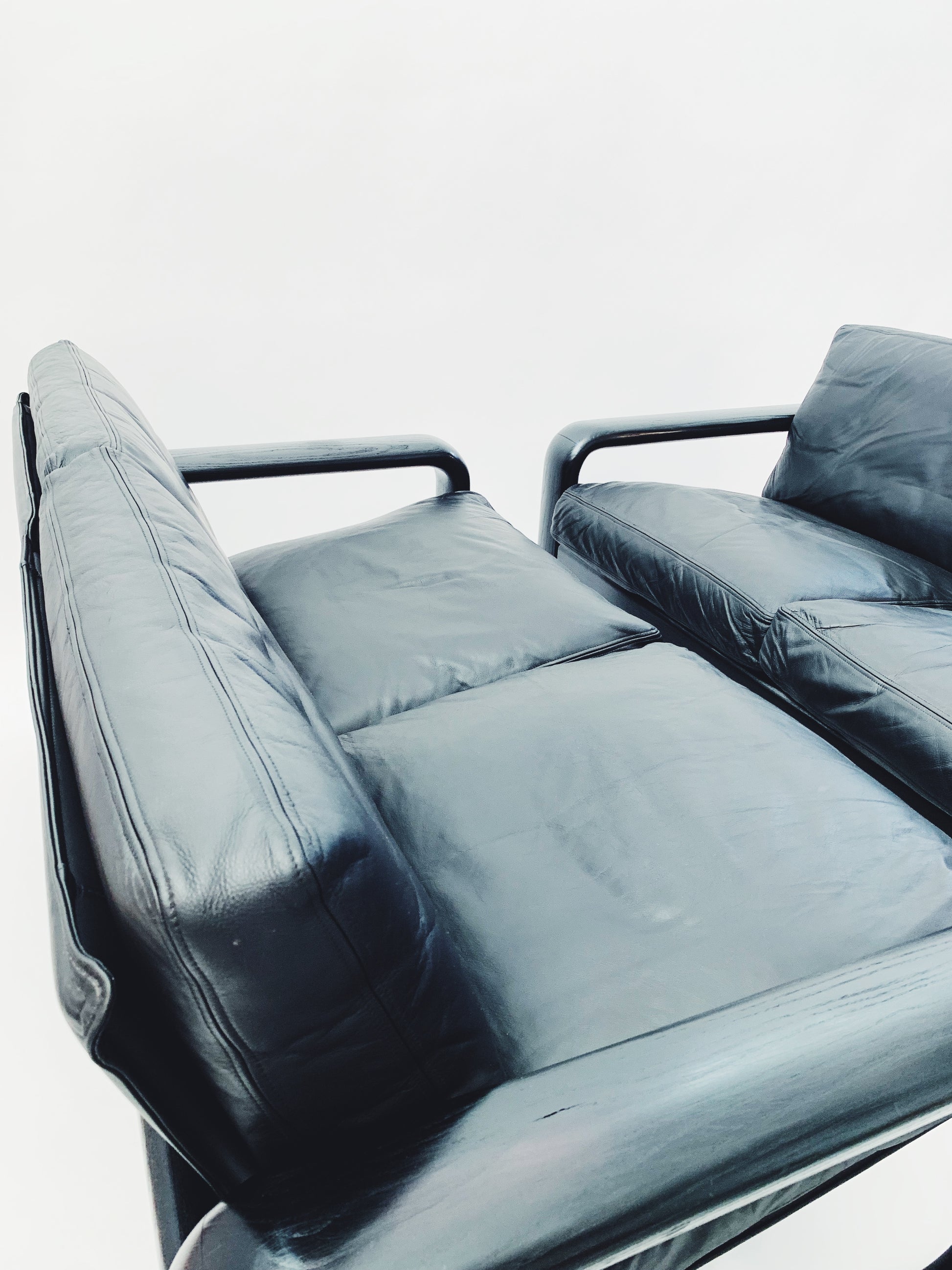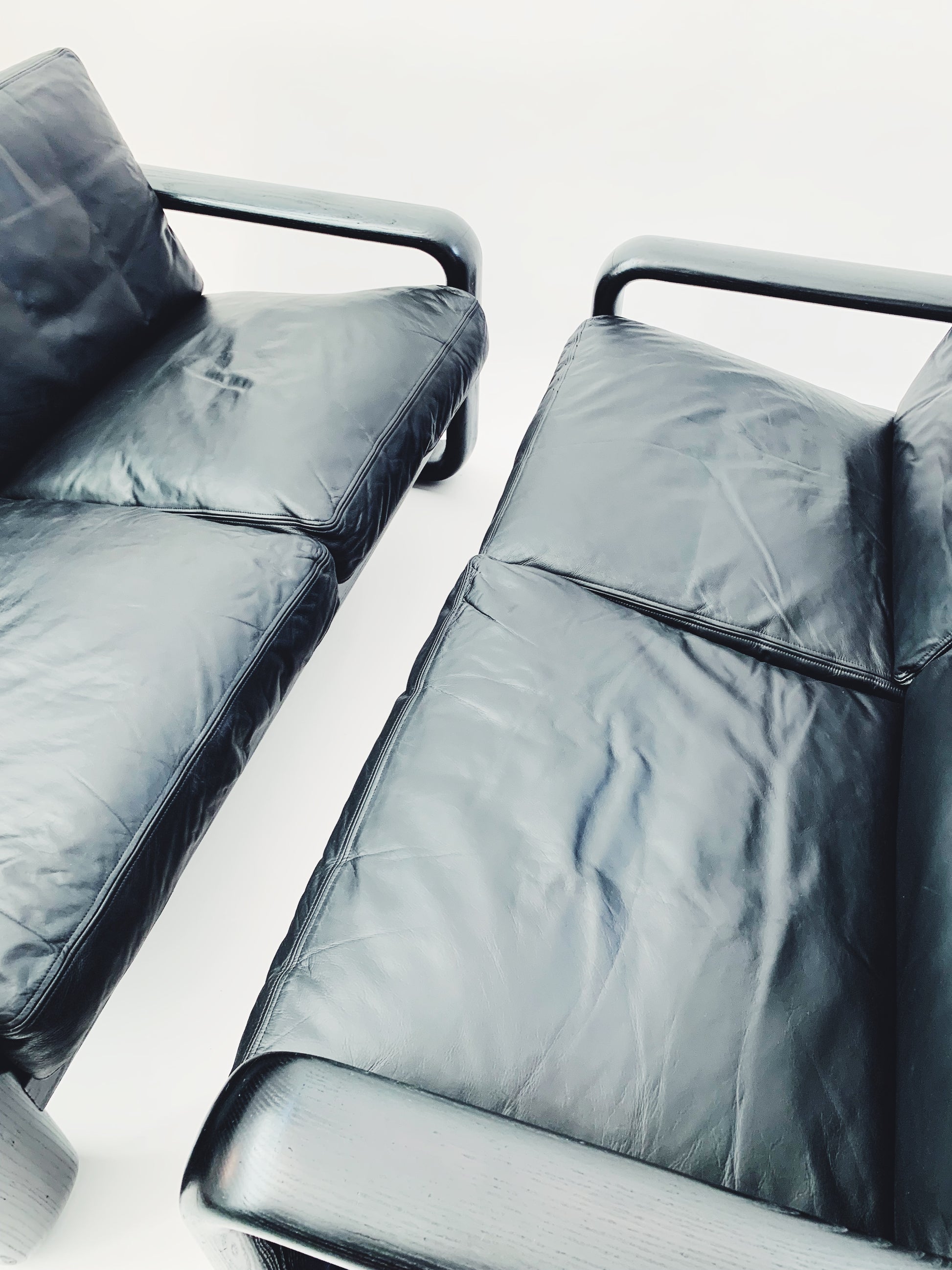 Das schwarze Leder befindet sich in einem guten Zustand. Bequeme und gemütliche Sitzposition.
